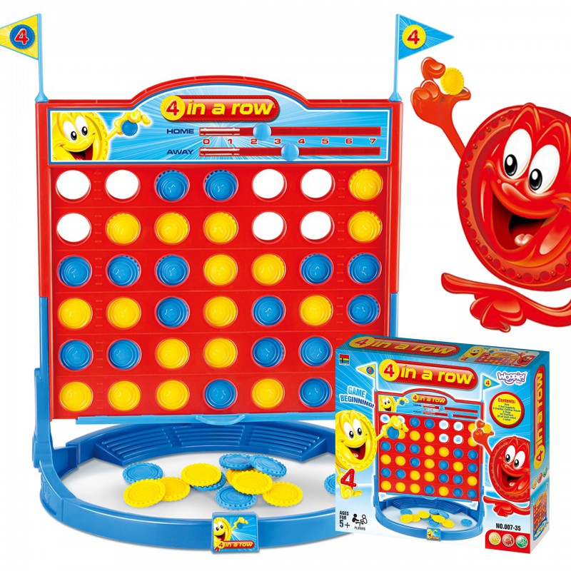 Стратегическая игра 4 в LINE WOOPIE 48341 - это головоломка для всей семьи. Уникальная игра для двух сообразительных игроков. 4 IN ROW дарит детям отличное удовольствие. Игра развивает логическое мышление вашего ребенка, тренирует разум и координацию зрения. Содержит доску и жетоны двух цветов. Первый игрок погружает один из своих жетонов в любое отверстие в верхней части доски. Затем второй игрок кладет свой жетон, пытаясь заблокировать движение соперника. Игроки двигаются поочередно. Цель игры – расставить четыре жетона одного цвета в один ряд. Если игрок сначала получает 4 жетона одного цвета подряд, он выигрывает. Игра предназначена как для младших, так и для людей постарше. Родители также охотно используют его для игры со своими детьми.