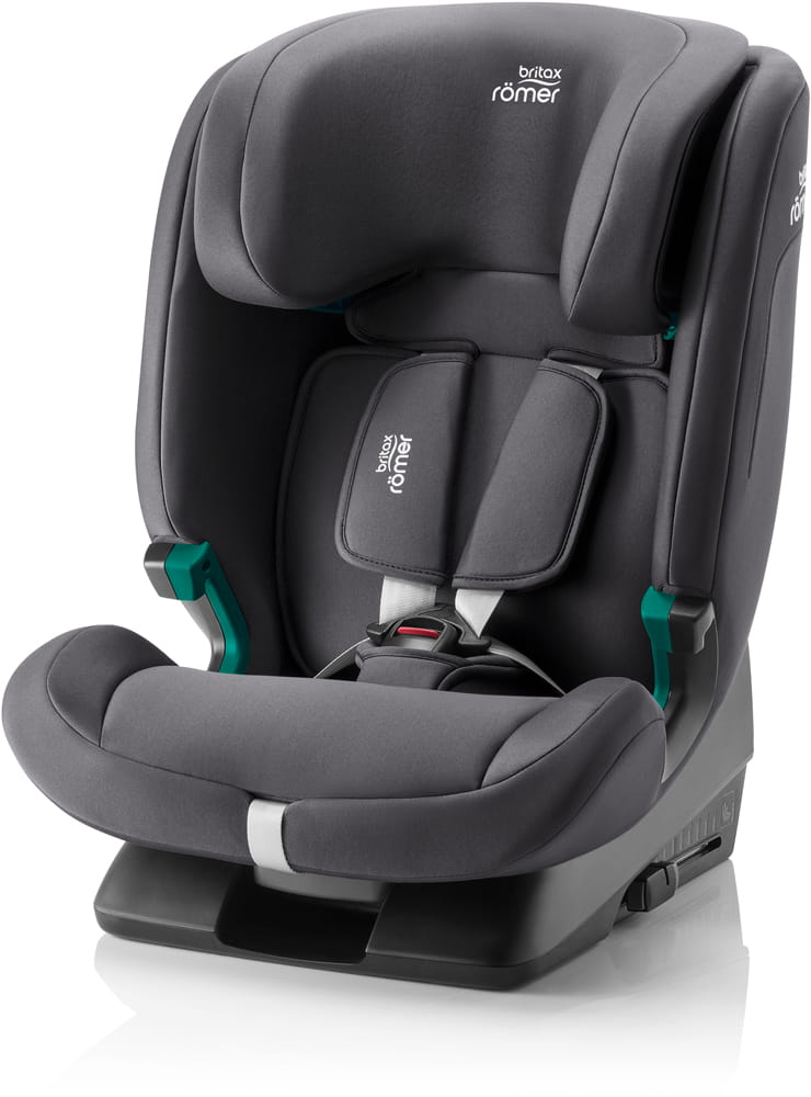 Автокресло Britax-Romer Evolvafix – является ответом на возрастающие требования безопасности. Сидение предназначено для детей ростом от 76 до 150 см, то есть от 15 месяцев до 12 лет. Сидение крепится лицом вперед с помощью системы Isofix и ремня Top Tether. Несомненным преимуществом этого кресла есть 5-точечные ремни безопасности, в которых можно пристегнуть ребенка весом до 22 кг. Ремни интегрированы с подголовником, то есть, увеличивая высоту подголовника, ремни также подстраиваются под рост ребенка. Приятная обивка, легкая установка, высокий класс безопасности – это характеристики лучшего кресла Britax Romer Evolvafix.