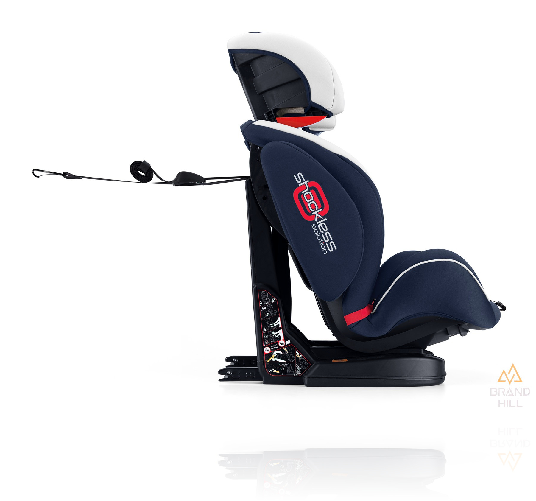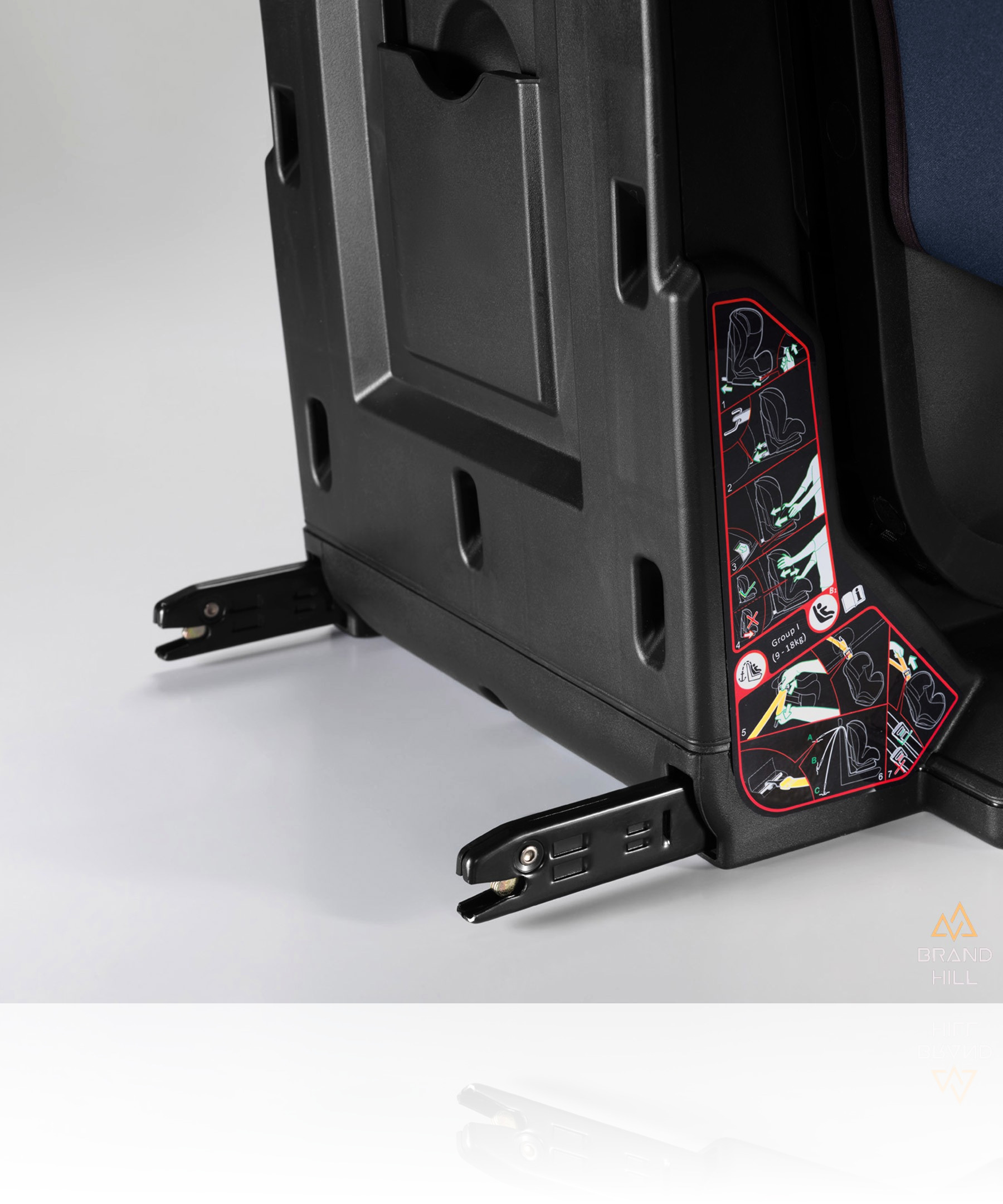 - автокресло устанавливается на сиденье в группе I с помощью универсальной системы Isofix с задними разъемами (для их извлечения нужно просто нажать передние кнопки автомобильного сиденья) и верхней привязки (длиной 2 м), расположенной на задней части автомобильного сиденья, чтобы избежать любого вращательного движения