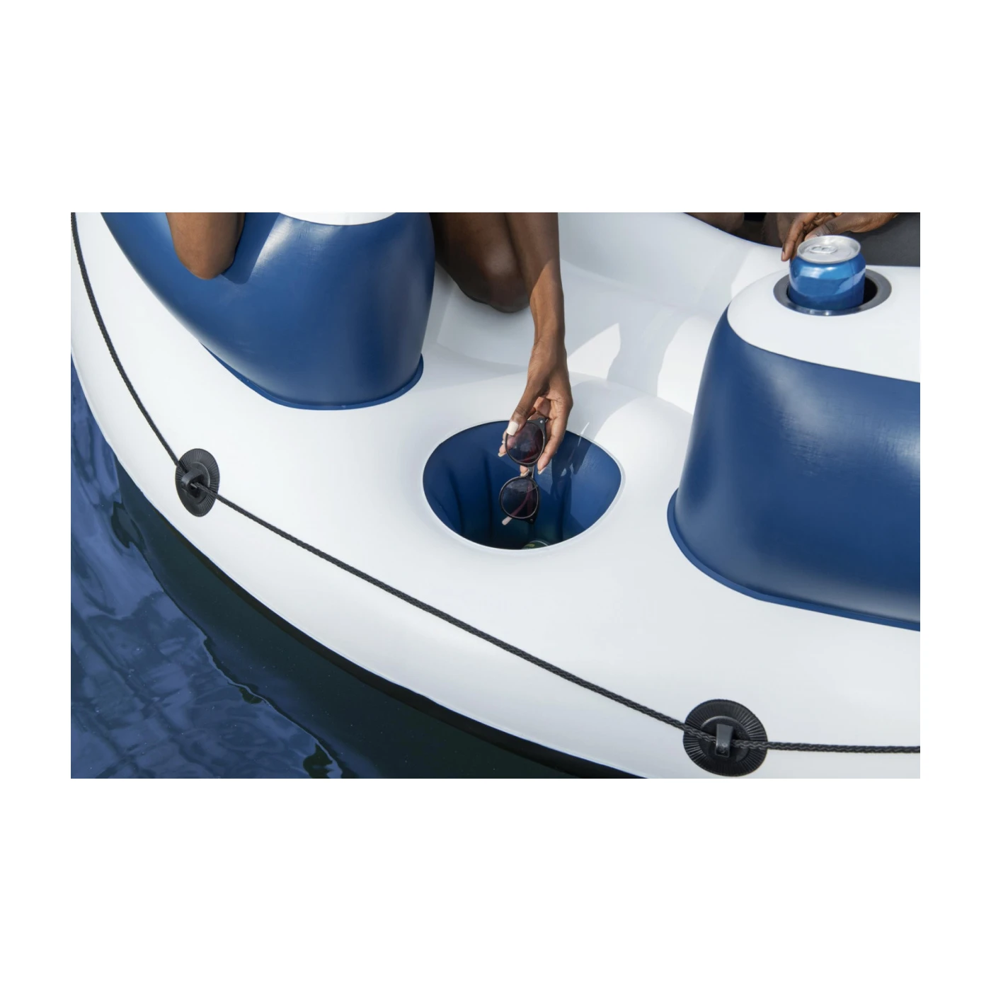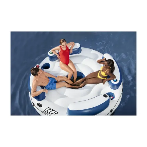 Надувной матрас Bestway на 4 человека Lazy Dayz 239x63,5 43536 - надувной остров Lazy Dayz на 4 человека от бренда Bestway предлагает пользователям удобство и комфорт во время отдыха на воде. Благодаря своим размерам примерно 239 см в диаметре и примерно Высота 63,5 см позволяет каждому свободно расслабиться и насладиться отдыхом на воде в жаркие дни. Остров изготовлен из ПВХ-материала высочайшего качества с технологией Inflata-Shield, которая предотвращает потерю формы и чрезмерное растяжение во время использования. Прочные предохранительные клапаны обеспечивают легкое надувание и сдувание воздуха. Это означает, что вы можете быстро подготовить остров к использованию или свернуть его и убрать на хранение, когда он больше не требуется.Островная конструкция разработана для обеспечения максимального комфорта. Посередине есть вырез из сетчатого материала, через который протекает охлаждающая вода. Каждый человек, отдыхающий на острове, также имеет широкую надувную спинку. Для вашего удобства есть 4 отделения для напитков и 2 специальные отделения, где можно хранить солнцезащитную косметику или снеки. Плавательный остров предлагает комфорт и безопасность во время отдыха на воде. Благодаря двум ручкам и веревке, закрепленной на внешней стороне колеса, остров можно легко поднять из воды. Это также обеспечивает дополнительное сцепление во время захода в воду.