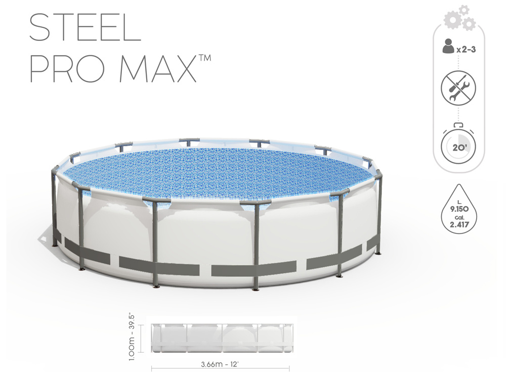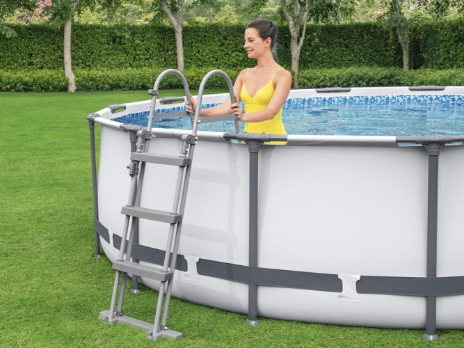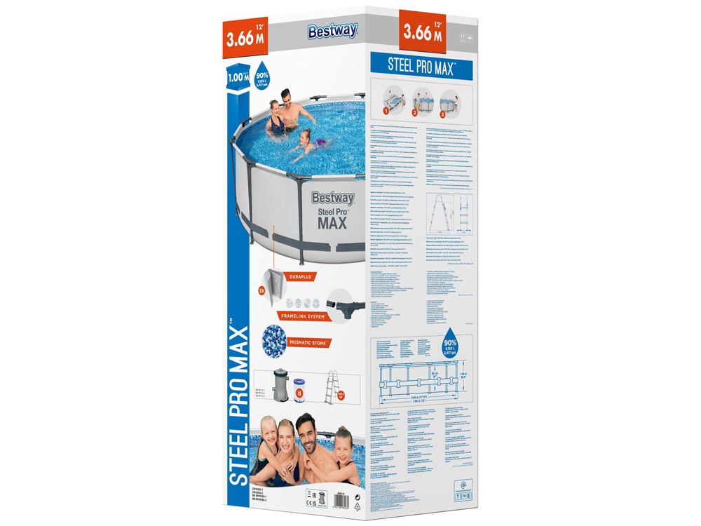 Каркасный бассейн Bestway 366x100 см 10в1 56418 обеспечит прохладу в жаркий день. Каркас бассейна выполнен из металлической конструкции, устойчивой к дождю и переменным погодным условиям. Специальные застежки, используемые в системе FrameLink System™, предотвращают коррозию в месте соединения металла с металлом.Чаша бассейна изготовлена из DuraPlus™ — материала с сердцевиной из полиэфирной сетки и двумя толстыми слоями ПВХ. Отличается повышенной прочностью и устойчивостью к проколам.Бассейн оборудован удобной и безопасной лестницей, позволяющей легко и быстро снимать ступеньки, когда бассейн не используется. В результате дети не смогут войти в бассейн без присмотра взрослых.В такой бассейн поместится 9150 литров воды, так что нырять можно без проблем. Для быстрого слива воды доступны специальные клапаны с регулировкой потока. Чистота воды обеспечивается насосом, который фильтрует воду, чтобы можно было как можно дольше наслаждаться летним отдыхом в чистой воде.