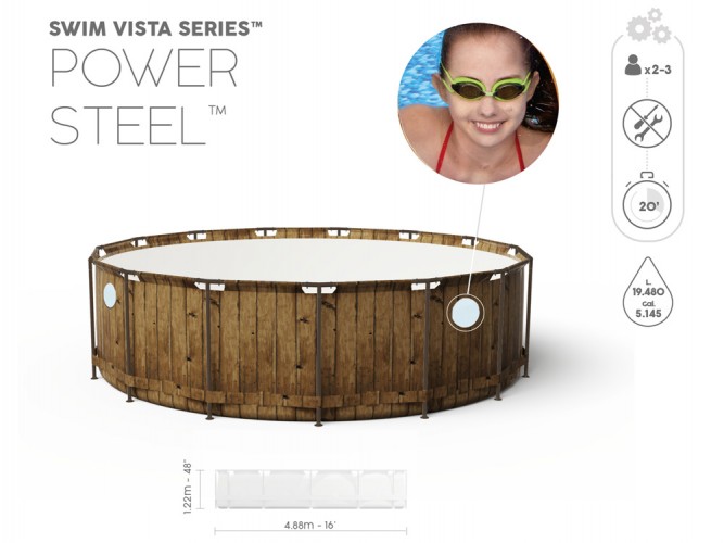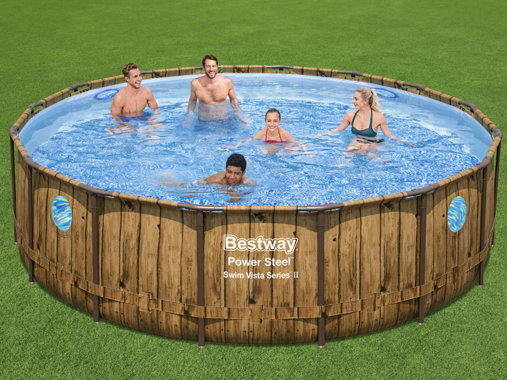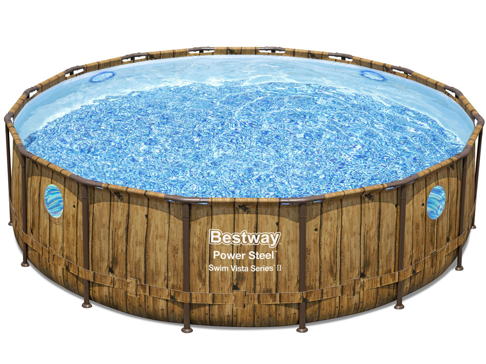 Каркасный бассейн Bestway 488x122 11w1 56725 - обеспечит приятное охлаждение в жаркий летний день. Необычный дизайн бассейна из деревянных досок идеально впишется в любой сад. Кроме того, бассейн оснащен окошечком. Бассейн изготовлен из металлоконструкции, устойчивой к дождю и изменению погодных условий. Система Seal & Lock System ™ обеспечивает надежное соединение между каждой стальной рамой. Трехслойное соединение из ПВХ и сердцевины из полиэстера обеспечивает прочность и поддержку. Благодаря усиленным встроенным окнам родители могут наблюдать за детьми во время купания. Бассейн оснащен удобной и безопасной лестницей, которая позволяет легко и быстро снимать ступеньки, когда бассейн не используется. Благодаря этому дети не смогут попасть в бассейны без взрослого. В нем вмещается 19 480 литров воды, поэтому нырять будет легко. Также есть специальные клапаны для быстрого слива воды. Чистота воды обеспечивается благодаря фильтрующему насосу. Химический дозатор ChemConnect ™ обеспечивает чистую и здоровую воду.