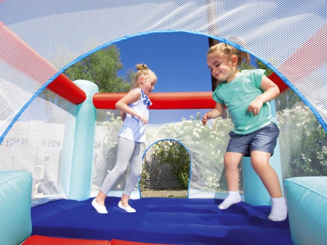 Надувной батут Bestway с горкой 53310 - Красочный надувной батут размером 250 x 210 x 152 см, с боковыми стенками, сетчатыми стенками, изготовленный из прочного полиэстера с покрытием из ПВХ. Боковины из сетки обеспечат отличную защиту, к тому же родитель сможет увидеть, как проводит в ней время его ребенок.