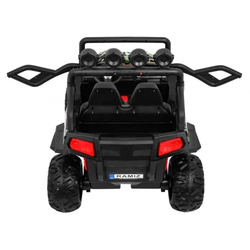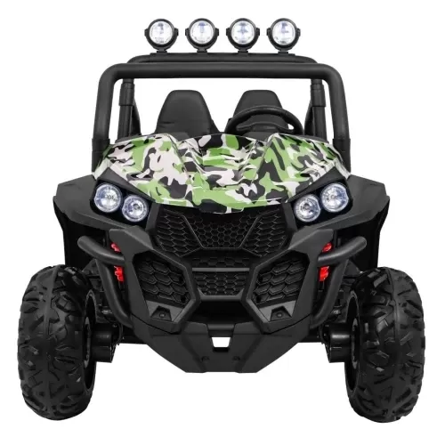 Детский электромобиль Grand Buggy Strong Lift Moro – двухместный аккумуляторный автомобиль раскрывает весь свой потенциал благодаря 4 двигателям мощностью 45 Вт каждый. Вместе с аккумулятором 24V/5Ah они обеспечат безопасность и комфорт вашего ребенка. Полный привод позволит ребенку почувствовать себя маленьким гонщиком, даже одолевая большие выбоины и холмы на дороге. Во время езды дети могут слушать FM-радио или собственные песни благодаря входам SD, MP3, AUX и Bluetooth. Для еще большего удовольствия они могут включить реалистичные звуки на руле и светодиодные фонари на передней части автомобиля. Автомобиль на аккумуляторе должен обеспечивать не только надежную езду, но и полную безопасность. Именно поэтому модель оснащена ремнями безопасности и функцией Slow Start, мягко приводящей транспортное средство в движение. Для родителей добавлен пульт дистанционного управления, с помощью которого можно управлять автомобилем на расстоянии, а также мгновенно остановить его в случае необходимости. На пульте также есть 3-скоростной регулятор. Внедорожный Grand Buggy – это не только мощный, но и комфортный автомобиль. Он имеет сиденья из удобной вентилируемой эко-кожи, а также колеса из пенополиуретана EVA с 2 амортизаторами для задней части. Практическим дополнением является то, что сиденье можно регулировать, чтобы лучше отвечать потребностям вашего ребенка. Большой детский автомобиль оснащен вместительным багажным отделением сзади и специальными 2 отсеками для напитков. Это означает, что вы можете взять все, что нужно для поездки. Встроенная ручка для транспортировки также пригодится, если вам нужно будет переместить автомобиль.