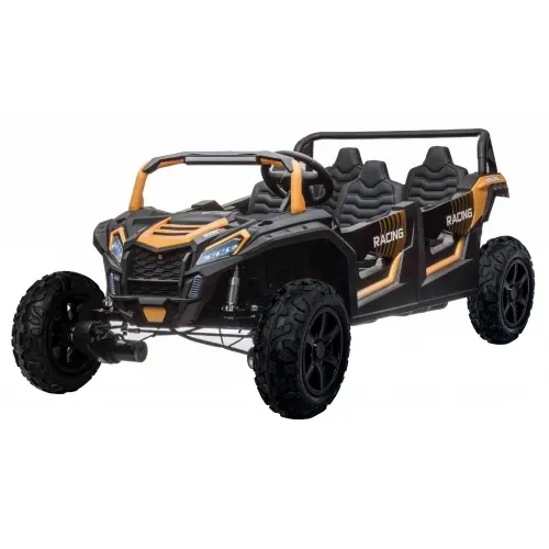 Детский электромобиль Ramiz Buggy ATV RACING UTV2000 (Li-ion) 4-местный - представляем самый большой внедорожник Buggy ATV RACING UTV2000 для детей в нашем предложении. Этот впечатляющий автомобиль может вместить до 4 человек, что делает его идеальным выбором для братьев и сестер или группы друзей. Катание на багги доставляет бесконечное удовольствие, а также развивает моторику детей и координацию движений. Это отличный вид активного отдыха. Оснащенный 4 мощными двигателями мощностью 150 Вт каждый и литий-ионной батареей 24 В/15,6 Ач, ATV RACING UTV2000 Buggy гарантирует надежность и длительное удовольствие без необходимости зарядки. Полный привод обеспечивает превосходное сцепление и стойкость даже на сложной местности. Мощная батарея и двигатели позволяют машине отлично управлять любой поверхностью, даря детям незабываемые впечатления. Интерактивные элементы автомобиля, такие как светодиодные фонари и усовершенствованная аудиопанель, добавляют новое измерение развлечений. Светодиодные фары не только улучшают обзорность, но и придают автомобилю реалистичный вид. Аудиопанель с входами MP3, AUX, USB и Bluetooth позволяет детям слушать любимую музыку или предварительно загруженные мелодии во время вождения, что делает каждую поездку еще более приятной. Комфорт вождения обеспечивают большие надувные колеса , которые отлично поглощают неровности. Сидения, обтянутые экокожей, не только выглядят элегантно, но и удобны и легко чистятся. Возможность установить 2 скорости езды непосредственно на кабине позволяет регулировать темп езды в соответствии с навыками и возрастом ребенка. Багги ATV RACING UTV2000 также оснащен рядом функций, повышающих безопасность маленьких водителей. Функция Slow Start устраняет рывки при старте, что особенно важно для детей младшего возраста. Каждое из 4 сидений имеет отдельные ремни безопасности, хорошо работающие даже во время динамичной езды. Кроме того, дверь автомобиля оснащена замком для предотвращения их случайного открывания во время движения.