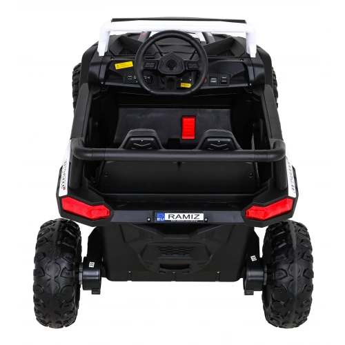 Электромобиль RAMIZ Buggy UTV 2000M Racing – усовершенствованный полный привод покажет себя с лучшей стороны при любых условиях. Преодоление сложной местности станет легким и увлекательным. Ребенок сможет наслаждаться вождением, а родители не будут волноваться, что машина не сможет справиться с вызовами холмов и неровностей на дороге. С помощью индикатора заряда будет легче контролировать, когда подключать батарею к зарядному устройству. В долгих поездках развлечения станут еще веселее благодаря дополнительным функциям. Аудиопанель с входами MP3, AUX, USB и SD сделает дорогу более приятной. Кроме того, есть также соединение Bluetooth и автомобильные звуки на руле. Автомобиль будет хорошо смотреться даже в темное время суток благодаря светодиодным фонарям спереди и сзади. Езда на батарейках должна быть комфортной и безопасной для малышей. Ввиду этого модель оснащена ремнями безопасности, возможностью выбора 2 скоростей движения с помощью переключателя на кабине и функцией Slow Start, которая обеспечивает плавный старт и торможение. Комфорт также обеспечат колеса из крепкой пены EVA и амортизатор на задней оси.