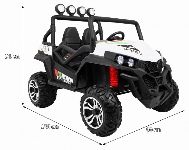 Электромобиль RAMIZ Grand Buggy 4x4 LIFT - Этот внедорожник покорит вашего ребенка, он может почувствовать себя настоящим гонщиком.Амортизаторы на задних колесах и удобное сиденье из вентилируемой экокожи для комфорта вашего ребенка. Он приводится в движение мощностью четырех мощных двигателей мощностью 45 Вт (8000 об / мин) и имеет две мощные батареи 12 В / 7 Ач . Автомобиль изготовлен из прочного первоклассного пластика и оснащен светодиодными фонарями спереди. Автомобиль будет использоваться ребенком до тех пор, пока он не наберет вес 40 кг.
