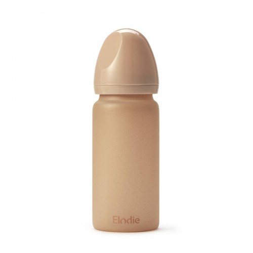 Стеклянная бутылочка для кормления Elodie Details - экологически чистая стеклянная бутылочка для кормления Elodie из термостойкого боросиликатного стекла с соской с медленным потоком - идеальная первая бутылочка для Вашего малыша. Он не может отсутствовать в постели для малыша. Стеклянная бутылочка легкая, прочная и устойчивая к царапинам. Стекло естественно свободно от вредных веществ, бутылочка выдерживает температуру от замерзания до стерилизации в кипящей воде. Крышка ниппеля бутылочки предотвращает загрязнение соски, а широкое горлышко позволяет быстро и легко чистить бутылочку. Бутылочка для кормления в комплекте содержит соску для малышей 0 - 6 месяцев. Медленно текущая соска против колик облегчает переход от грудного вскармливания к вскармливанию из бутылочки и, прежде всего, уменьшает количество воздуха, который заглатывает ребенок, и, как следствие, его дискомфорт и колики. Спиральная форма соска внутри предотвращает сворачивание соска. Дополнительно - сменные соски 0 месяцев + и 6 месяцев + к стеклянной бутылочке для кормления Elodie можно приобрести отдельно.
