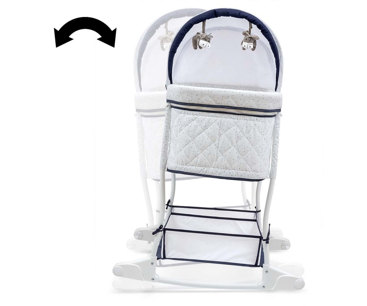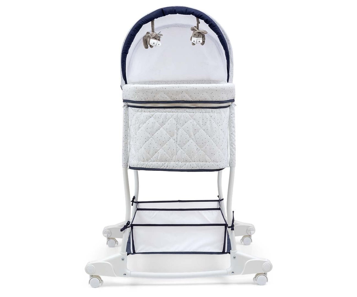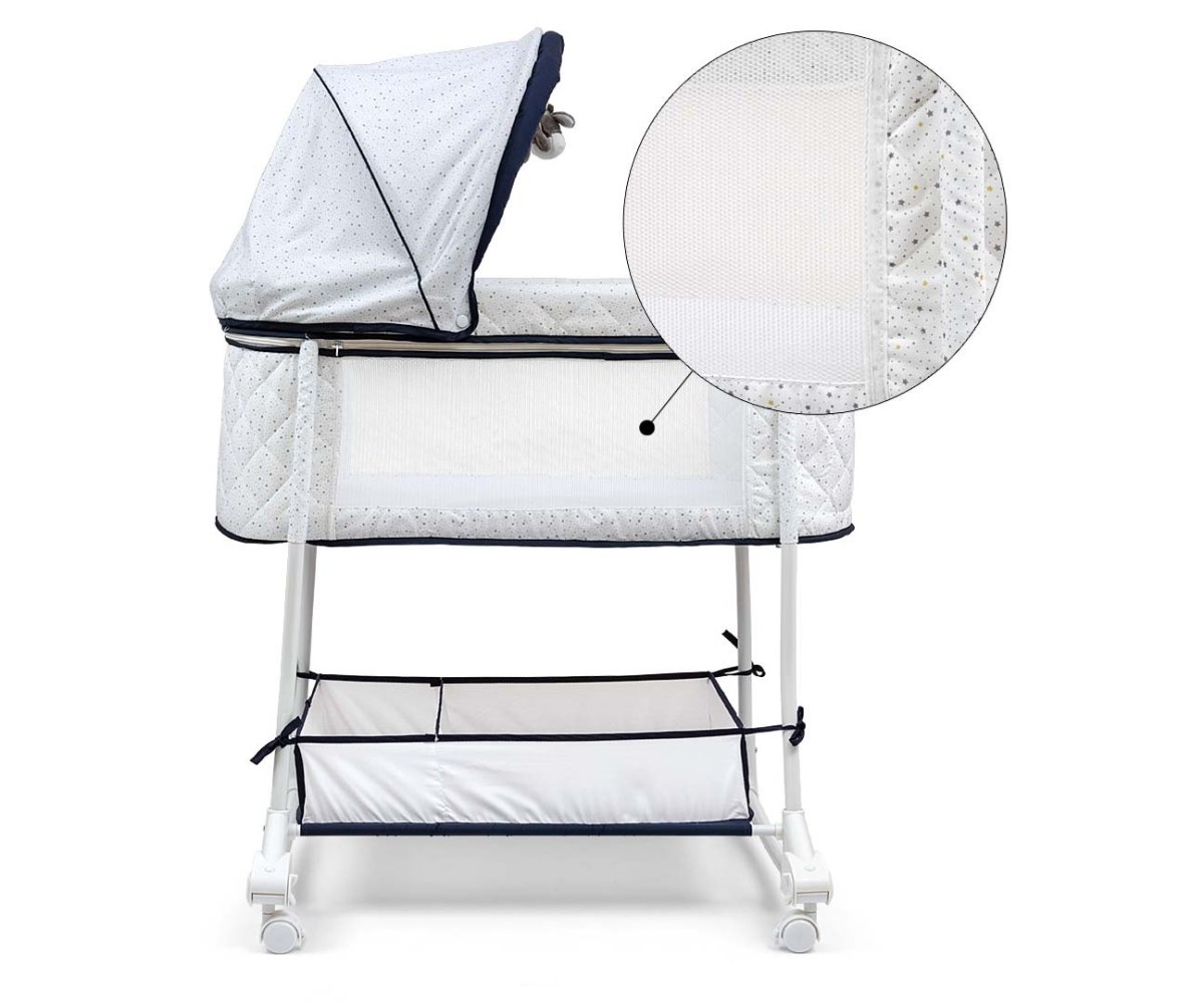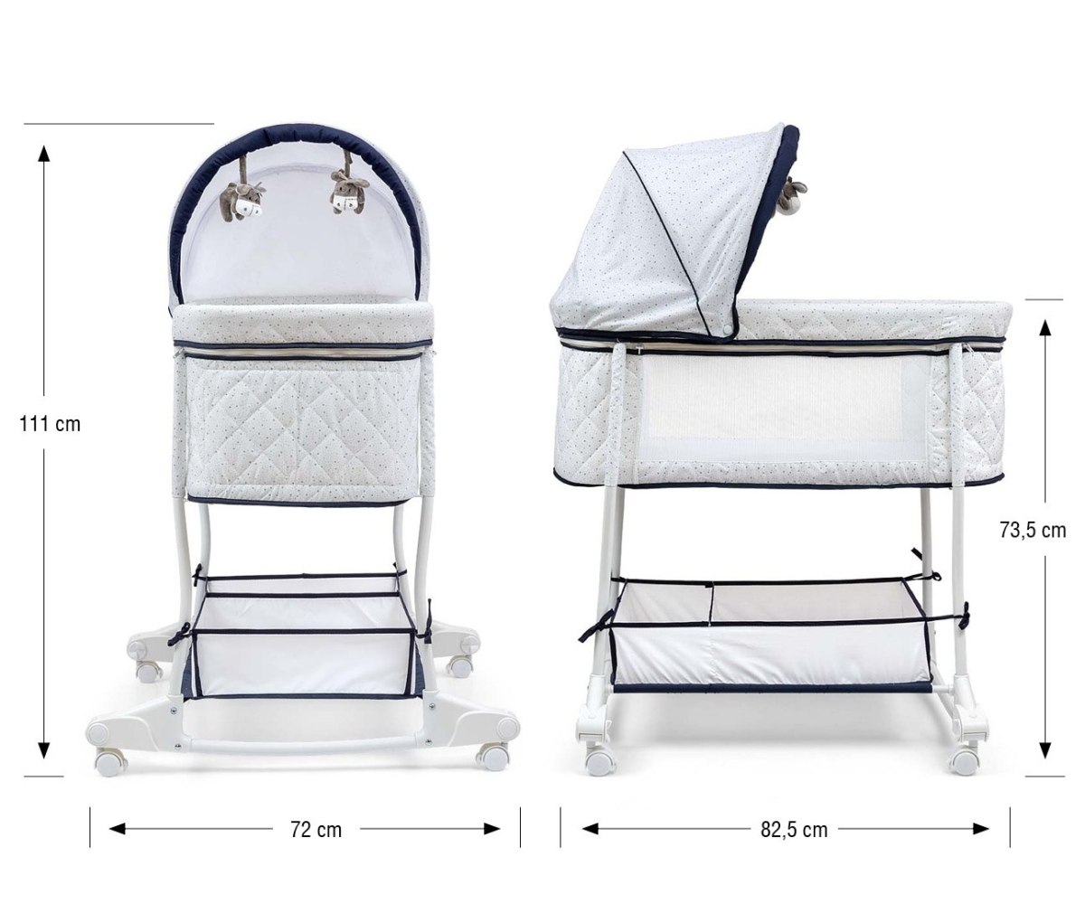 Детская люлька Milly Mally Dream On – современная и, прежде всего, многозадачная люлька Dream On 2в1 от Milly Mally. Новейший дизайн трубки Dream On и использованные технологические решения непременно понравятся родителям. Эта люлька-кроватка сочетает в себе две функции – как кровать для детей с первых дней жизни и как люлька. Чтобы изменить функцию с кроватки на люльку, потяните каждое колесо и верните его, тогда она спрячется в салазку, и вы сможете использовать функцию качания.Колыбелька-кроватка Dream On изготовлена из материалов высочайшего качества. Металлический каркас гарантирует долговечность и крепкость изделия.Dream On — это меньше, а значит, удобнее кровать, чем стандартная, благодаря которой новорожденный чувствует себя безопаснее и одновременно обеспечивает оптимальное пространство во время сна. Также это идеальное решение для родителей, ценящих не только практичность и комфорт, но и функциональность.Dream On может служить первой кроватью для новорожденных, особенно когда им необходимо быть рядом с родителями в первые дни жизни. Благодаря своим небольшим размерам кровать поместится в любой спальне и не только. Он идеально подойдет для посещения родных и друзей.Высокие боковые стенки с сеткой обеспечивают достаточную циркуляцию воздуха и позволяют родителям полный контроль и быструю реакцию, когда ребенок просыпается. Благодаря этому малыш быстрее успокаивается и лучше спит.Люлька – первая кровать оснащена практичным отделением для хранения вещей – корзиной для посуды и аксессуаров малыша, размещенных внизу, имеет 2 отделения.Управление люлькой-кроваткой очень интуитивно понятно, что позволяет быстро и плавно переключаться между функциями люльки Dream On. Чехол капюшона и гондолы можно снять для бережной стирки. Мягкий матрас обеспечит комфорт сна вашего ребенка.