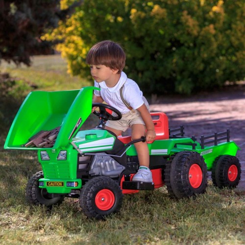 Трактор INJUSA Basic 6V + прицеп- идеальный способ воплотить в жизнь мечты многих мальчиков. В комплект входит прицеп, который легко прикрепляется к транспортному средству. Кроме того, трактор имеет световые и звуковые эффекты . Все сделано с вниманием к деталям, благодаря чему мы обязаны его реалистичному внешнему виду.