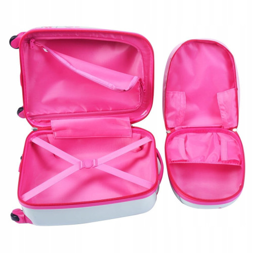 • высота ручки чемодана и регулируемые ремни рюкзака позволяют легко адаптировать набор к потребностям вашего ребенка.