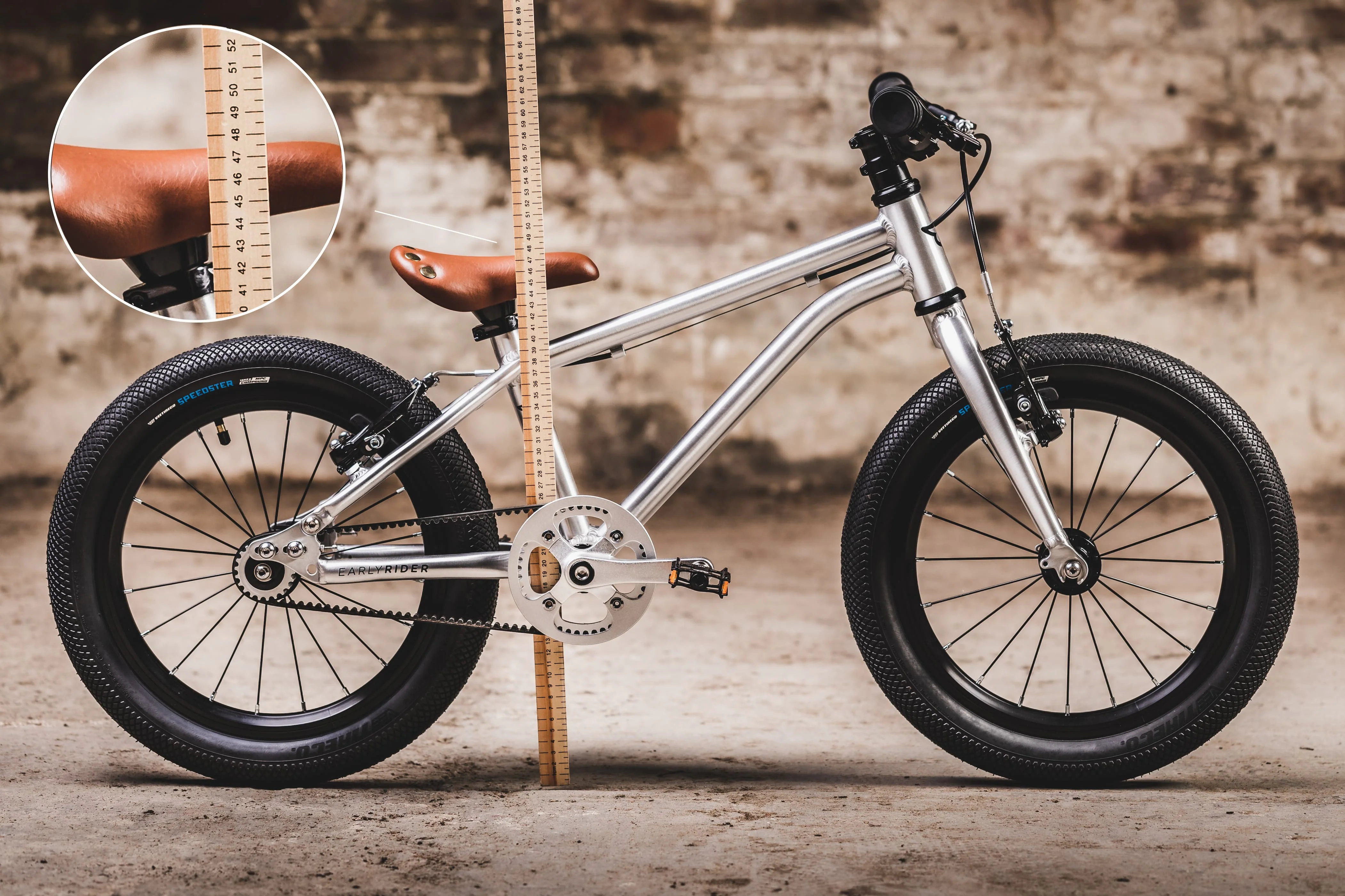 Детский велосипед Belter 16 дюймов от EARLY RIDER – сверхлегкое удовольствие от езды. Ременная передача отличается особой надежностью. Кроме того, нет необходимости в утомительной чистке и смазке цепи, поскольку ремень всегда двигается плавно, а это значит, что даже самые маленькие байкеры способны развивать потрясающую тягу. Шины шириной 2 дюйма обеспечивают стабильную управляемость и хорошее демпфирование даже на ухабистых дорогах. Короткие рычаги обоих тормозов особенно удобны для детей и ими можно управлять с небольшим усилием. Большой проблемой детских велосипедов является вес – это теперь в прошлом! Обычно такие велосипеды относительно тяжелы для детей, поэтому с ними трудно обращаться, на них неприятно ездить в гору и их трудно остановить. Элегантное седло из искусственной кожи и полированный вручную алюминий придают велосипеду спортивный стильный вид.