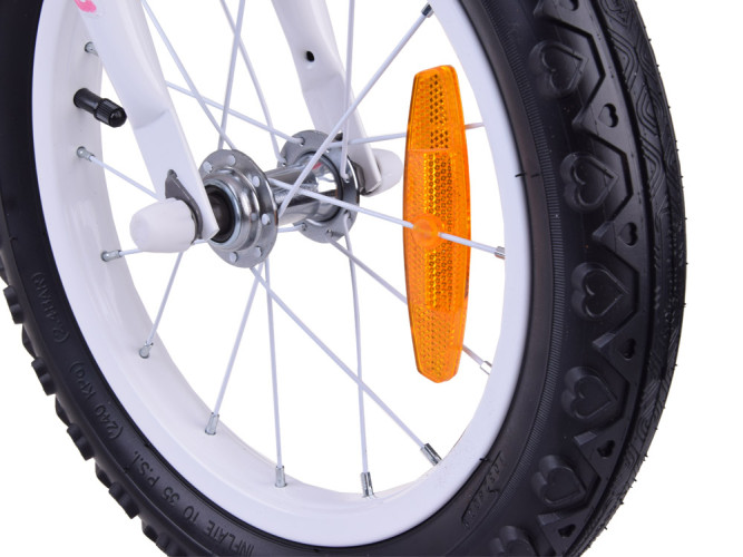 - Руль профессиональной формы с надежными резиновыми ручками имеет загнутые ручки и колокольчик. Кроме того, велосипед поставляется со стильной бело-розовой корзинкой, установленной на руле.