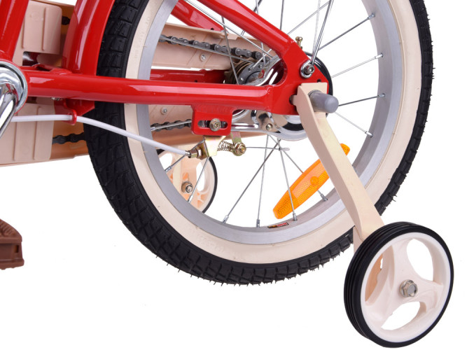 - Дополнительные аксессуары: звонок, боковые колеса, защита цепи, подножка и металлические брызговики в ретро-стиле делают этот велосипед идеальным выбором для вашего ребенка.