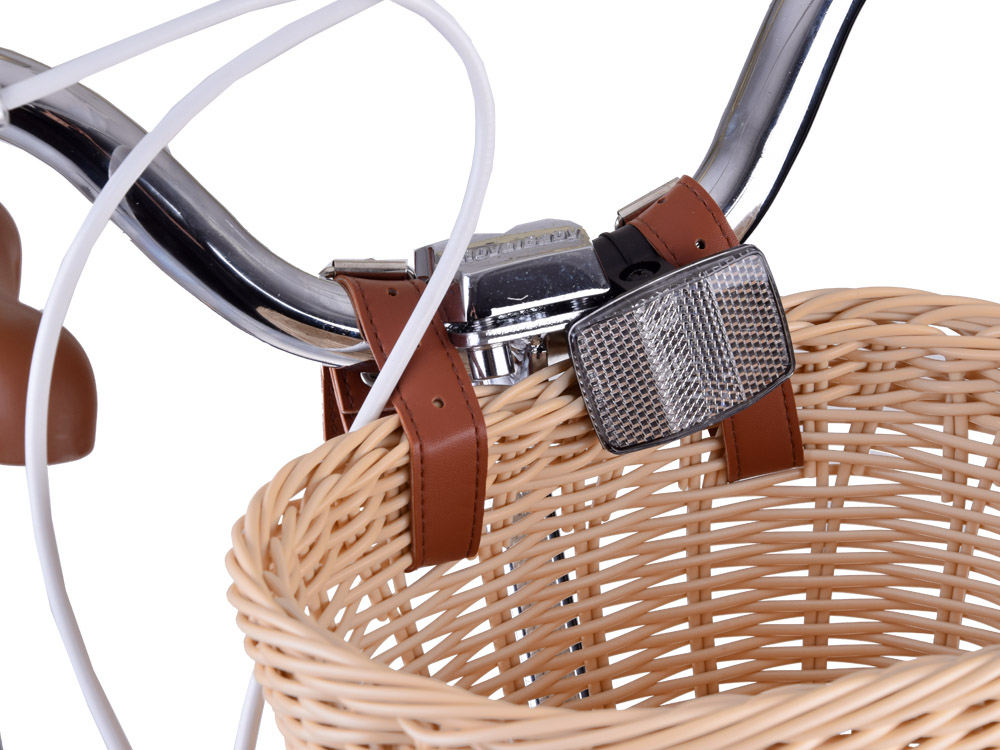 - Прочный руль: широкий и эргономичный руль гарантирует полный контроль велосипеда. На руле есть место для крепления стильной, вместительной корзины, чтобы взять с собой в дорогу самые необходимые вещи. Мягкие, крепкие резиновые ручки обеспечивают надежное сцепление и комфорт во время езды. Звонок, прикрепленный к рулю, позволит вам безопасно предупредить пешеходов во время езды.