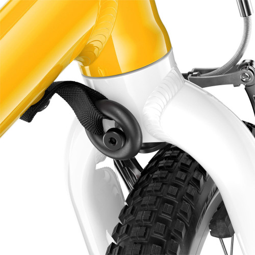 - Тормоз: мини V-brake с регулируемыми рычагами для маленьких рук, мягкие задние и более твердые передние тормозные колодки для эффективного торможения, высококачественные колодки Jagwire для уменьшения трения, цветная маркировка тормозных рычагов и тормозных колодок для легкого разрешения.