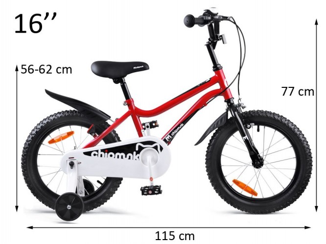 - Велосипед RoyalBaby Chipmunk MK CM16-1 - это велосипед, который идеально подходит для ребенка от 4 лет. Велосипед с низкопоставленной стальной рамой позволит удобно садиться и высаживаться с велосипеда. Мягкое седло с регулировкой высоты идеально подойдет на рост ребенка, имеет два ручных тормоза, адаптированных к маленьким ручкам ребенка надувные 16-дюймовые колеса с протектором имеют идеальное сцепление с землей боковые колеса для обучения езде широко расставлены позволят вам подружиться с велосипед. Брызговики на колесах защитят одежду от "незапланированного попадания в лужу. Полный чехол цепи защищает от травм и грязи. Цвета и спортивный дизайн - преимущества, которые визуально дополняют превосходное качество велосипеда.