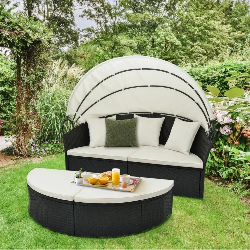 - Этот элегантный и функциональный диван-кровать является отличным выбором для отдыха на природе. Он станет хорошим дополнением к таким мерам, как вечеринка в саду или у бассейна, и, безусловно, украсит пространство вашего домашнего сада.