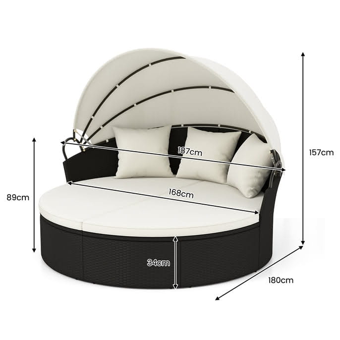 Садовый диван Costway с балдахином и столиком из ротанга 5688 – это кресло чрезвычайно функциональное. Благодаря возможности удлинения сиденья оно становится гибким предметом мебели, который адаптируется к вашим потребностям. Тогда вы можете наслаждаться и диваном, и журнальным столиком или двумя диванами. Прочная конструкция из полиэтиленового ротанга и прочный металлический каркас гарантируют стабильность и долговечность мебели, которая идеально подходит для бассейна, сада или террасы. Высококачественные 4 подушки для сидения и 3 декоративные подушки для комфорта и выдвижной балдахин, защищающий от солнца, сделают ленивый день на свежем воздухе еще более расслабляющим!