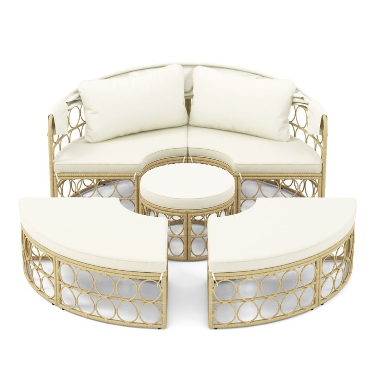 Садовый диван Costway с балдахином и столиком из ротанга 6443 - с выдвижным тентом, который позволяет мгновенно выбирать между солнцем и тенью. Изготовлен из стойкого к выцветанию полиэтиленового ротанга ручной работы, он придает стилю и долговечности вашему открытому пространству. Мягкие мягкие подушки обеспечивают непревзойденный комфорт, а модульные сиденья позволяют гибко расположить их, идеально подходят для любого случая. А простые в уходе чехлы сохранят ваш шезлонг как новый в течение многих сезонов!