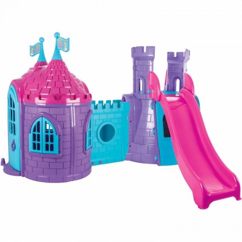 Игровая площадка Woopie Замок с горкой – это полноценное игровое пространство на правильном уровне для вашего ребенка и его друзей! Игровая площадка состоит из коттеджа/комнаты и башни с горкой, соединенных между собой коридором с окном. Домик имеет много пространства для игры, средневековые двери и окна, разноцветную крышу и пару флагов. Из комнаты коридор ведет к внутренней части башни, имеющей многочисленные окна и отверстия, пропускающие много света. С башни можно выйти через боковую дверь и по лестнице с крепкими перилами подняться на верхушку башни и съехать с горки длиной 166 см. Башня имеет высокую боковую защиту, чтобы защитить ребенка во время пользования горкой, которая имеет длинную, достаточно крутую горку, что полностью удовлетворит любого ребенка. Она изготовлена из высококачественного пластика, защищенного от ультрафиолетового излучения – идеально подходит для использования на улице и отлично подходит для игры в помещении!