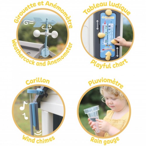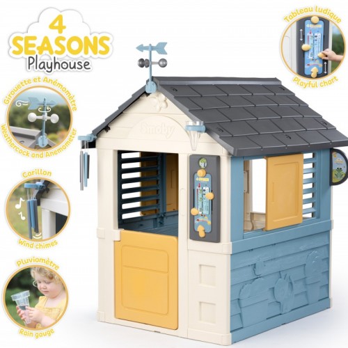 Игровой Домик Smoby 4 Seasons – это игрушка для детей в возрасте от 2 лет, которая поощряет к активному отдыху на свежем воздухе. Домик имеет яркий дизайн и много интересных функций, таких как окна с жалюзями, двери с колокольчиком и колокольчики для ветра. Дом также оборудован аксессуарами для изучения погоды, такими как дождь, флюгер и метеорологическая панель. Дети могут наблюдать изменения температуры, количество осадков и солнечного света и записывать свои выводы на панели. Домик изготовлен из высококачественного пластика, устойчивого к выцветанию и погодным условиям. Домик можно комбинировать с другими аксессуарами Smoby, такими как песочница, летняя кухня, пол, разбрызгиватель или садовый горшок (продаются отдельно). Садовый домик 4 сезона – идеальная игрушка для маленьких исследователей, любящих играть на свежем воздухе.