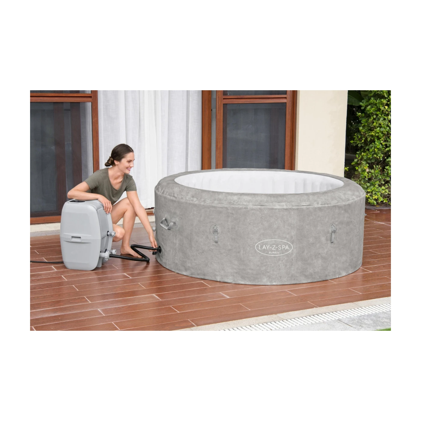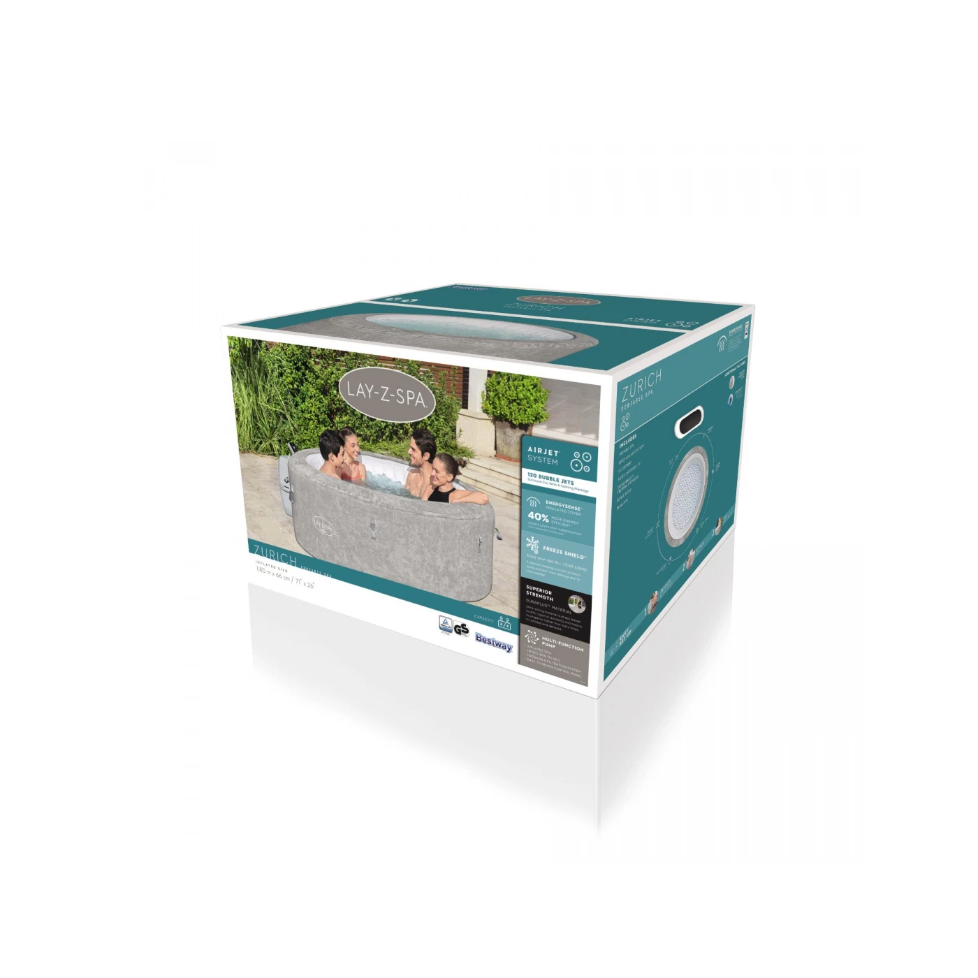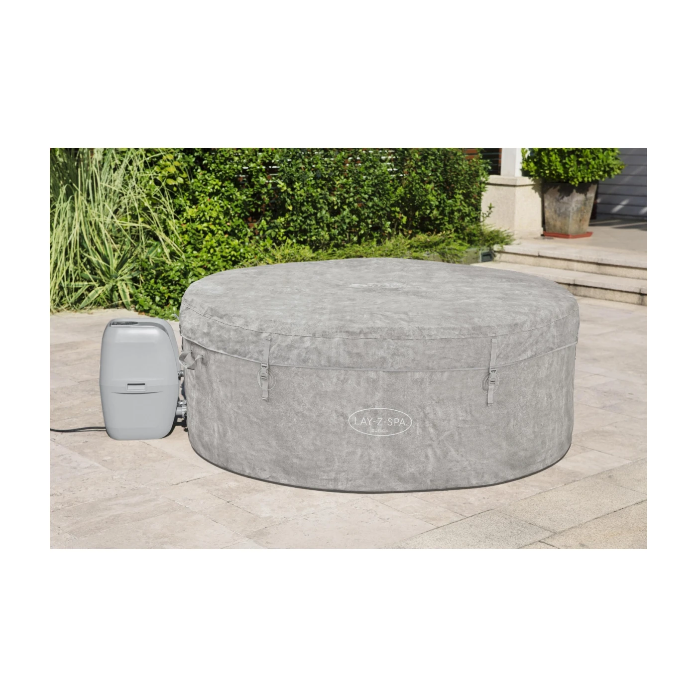 Джакузи Bestway Lay-Z-Spa 60065 - это модель надувного джакузи Bestway из серии Lay-Z-Spa. Он работает по системе AirJet, состоящей из 120 форсунок. Расслабляющий массаж будет ощущаться по всей внутренней стенке, поскольку именно там расположены отверстия. Из них вырывается поток теплого воздуха и мелкие пузырьки. Домашний спа-центр Zurich рассчитан на макс. 4 взрослых. Внутренний диаметр составляет приблизительно. 132 см, а высота примерно. 66 см, что дает чувство комфорта и отдыха. Садовое джакузи наполняется примерно 669 литрами воды.Насос джакузи подключается снаружи. Он отвечает за все важные функции, такие как управление SPA с помощью удобной сенсорной панели. Внутри насоса есть современные механизмы нагрева и фильтрации воды. Самые качественные материалы помогают снизить шум при работе и защищают от электрических неисправностей. Усовершенствованный насос оснащен специальными технологиями, такими как контроль заземления и защита от замерзания Freeze Shield. Первый выключит насос при обнаружении неправильного подключения. Защита от замерзания воды защитит джакузи от замерзания и возможного повреждения при низких температурах.