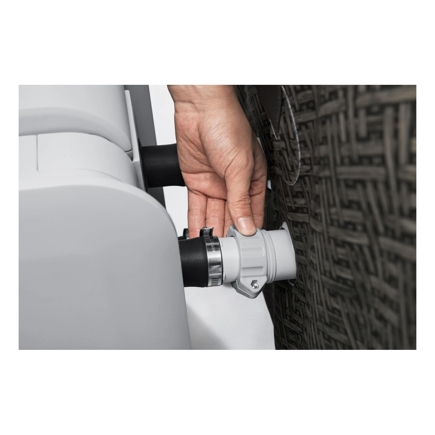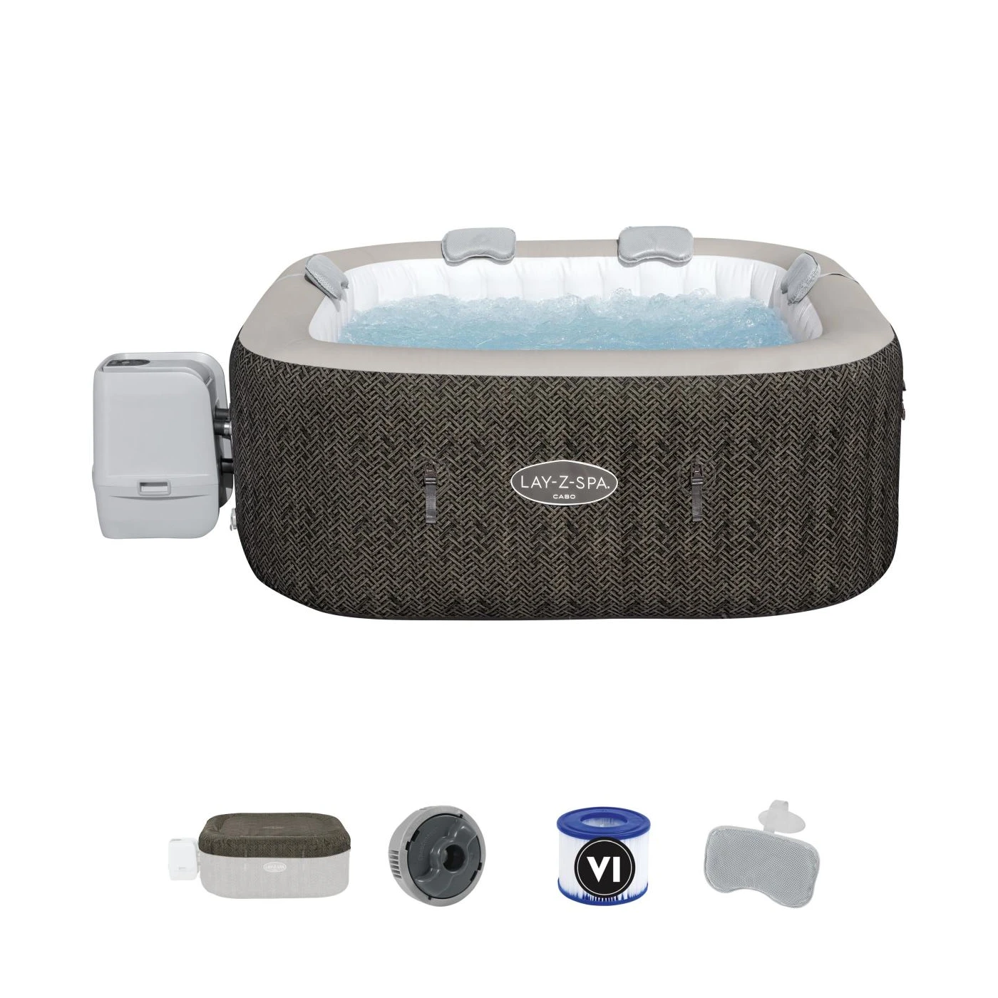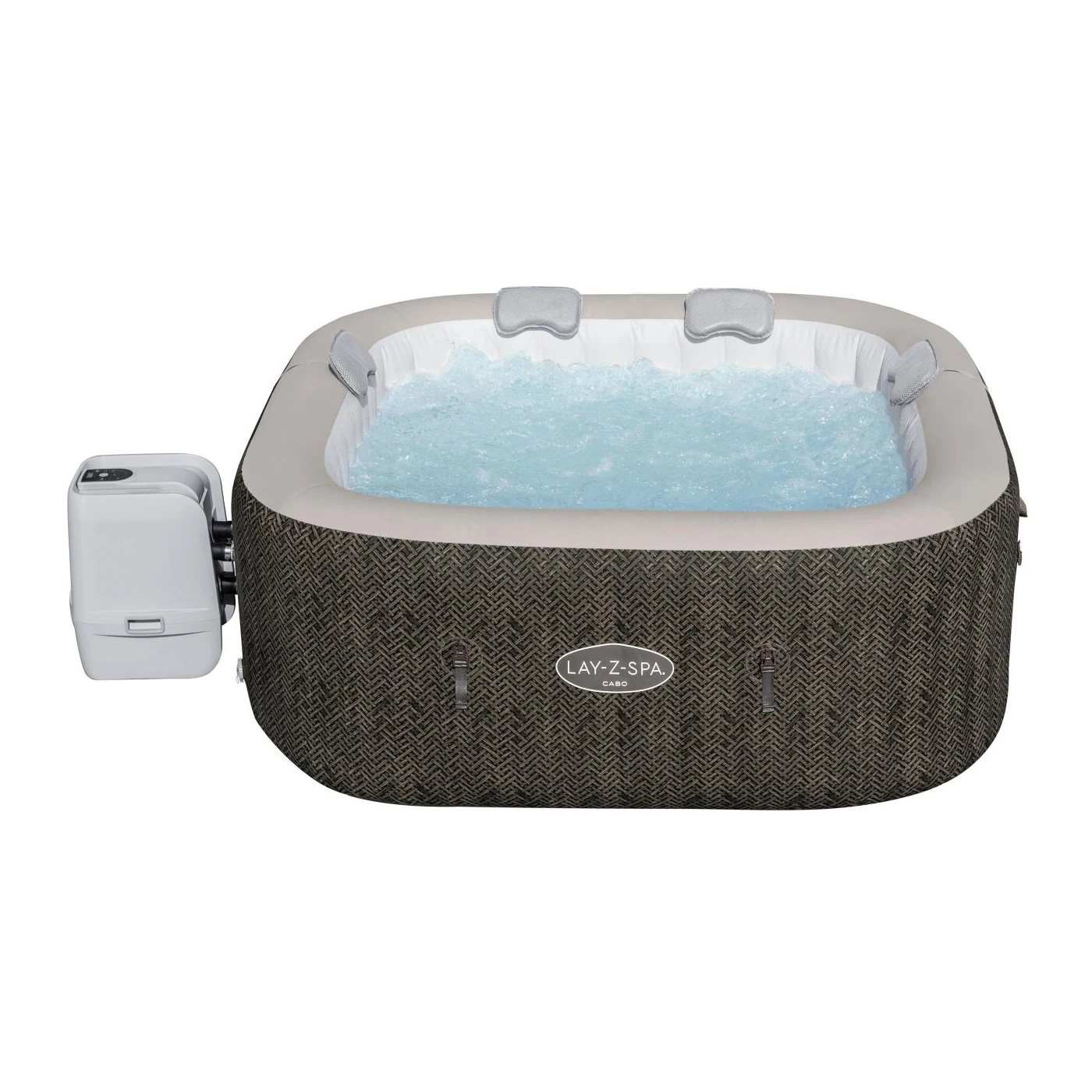 Джакузи Bestway Lay-Z-Spa Cabo 6001R - оснащено усовершенствованной системой массажа HydroJet, которая сочетает 4 регулируемых форсунки горячей воды и 140 форсунок горячего воздуха и пузырьков. Пользователь может регулировать интенсивность массажа на двух уровнях, обеспечивая идеальное расслабление после долгого дня. Система HydroJet обеспечивает эффективное расслабление мышц, улучшение кровообращения и общую регенерацию организма. Кроме того, домашнее джакузи Bestway имеет функцию Freeze Shield, которая предотвращает замерзание воды, автоматически включая нагрев при температуре 6℃ и выключая его при 10℃. Надувное джакузи Cabo Smart HydroJet имеет внешние размеры примерно 180x180x71 см и внутренние размеры примерно 130x130 см, что обеспечивает комфортные условия для купания. Спа-бассейн Bestway имеет объем воды около 795 литров и его легко переносить благодаря двум крепким ручкам. В верхней части насоса есть удобные отсеки для напитков, повышающие комфорт использования. Кроме того, садовое джакузи имеет функцию программирования нагрева воды на период 40 дней, что позволяет настроить параметры в соответствии с индивидуальными потребностями пользователя. Надувной набор джакузи Bestway включает в себя многочисленные аксессуары, повышающие комфорт и безопасность использования. До 4 мягких подушек под головой и шеей обеспечивают еще больший комфорт во время купания. Комплект также включает усиленную крышку с креплениями, которая эффективно защищает воду от загрязнения и потери тепла. Кроме того, комплект включает поплавок для дозировки химикатов ChemConnect™, который помогает поддерживать надлежащую чистоту воды, а также сменный фильтр типа VI и заплатку для ремонта. Надувной спа-бассейн Cabo Smart HydroJet Bestway – отличный выбор для людей, которые ценят отдых и комфорт самого высокого качества.