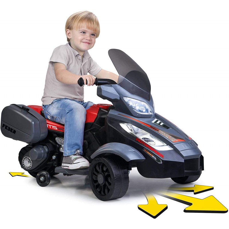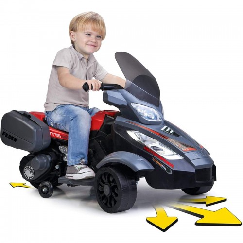 Електробайк Feber Tribike Motorspider 12V 12840 - Автомобиль оснащен аккумулятором на 12 В и зарядным устройством. Также в нем есть две боковые полки для хранения вещей. Коляска имеет четыре направления движения - вперед, назад, правый поворот, левый поворот. Предназначен для детей от 3-х лет. Максимальная нагрузка до 30 кг.