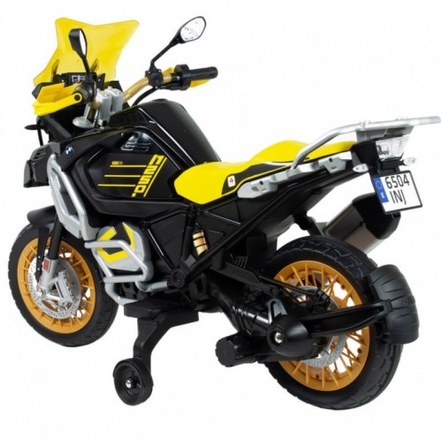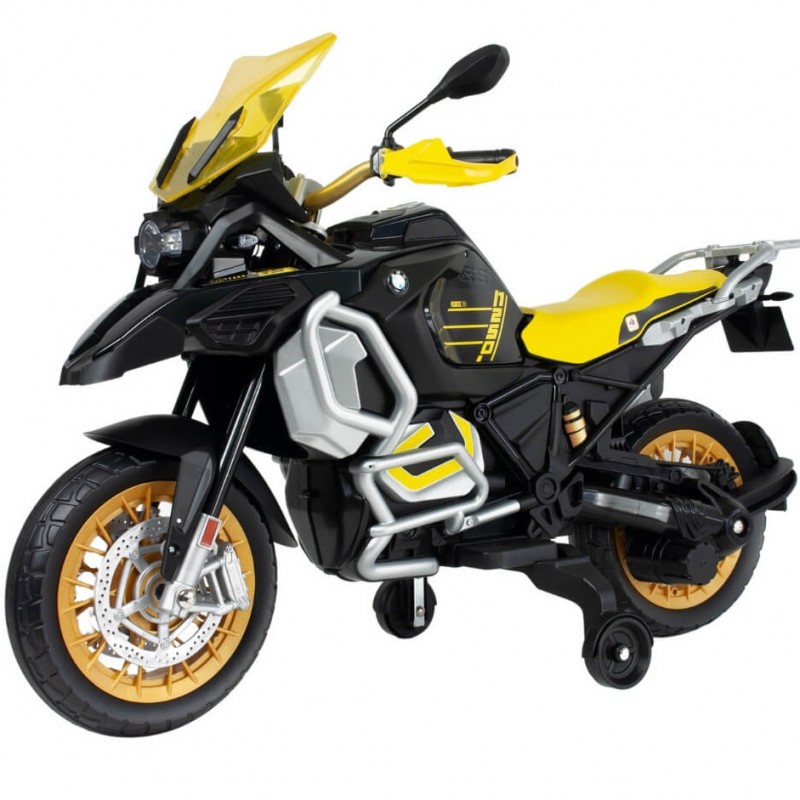 BMW 1250 GS Adventure Edition 40 Years с аккумулятором 12V от известного бренда INJUSA имеет официальную лицензию BMW и рекомендован для детей от 3 лет. Среди его главных особенностей выделяются пластиковые колеса с резиной, улучшающие сцепление с дорогой, кнопка запуска или вход для mp3, благодаря которым дети могут слушать лучшую музыку, развлекаясь. Устройство очень реалистичное с лучшими приложениями, такими как задняя крышка и комплект для багажа. Транспортное средство развивает скорость 5-6 км/ч. Он включает передние и задние светодиодные фонари, которые активируются, когда байк запускается, и колеса, улучшающие стабильность малышей во время путешествия.