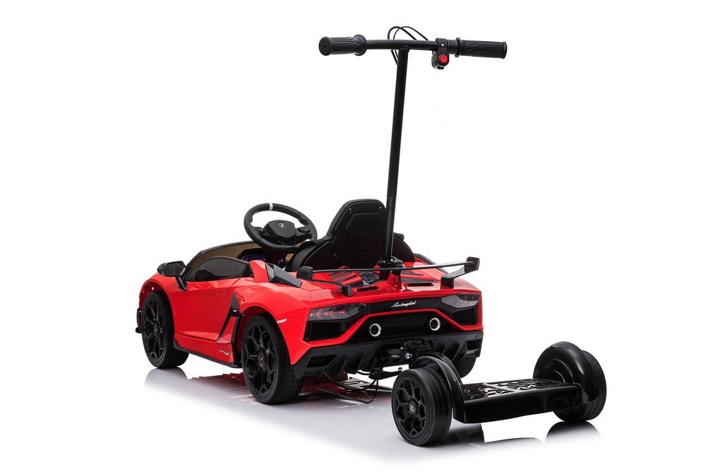 Детский электромобиль LEANToys Lamborghini Aventador SX2018 с подставкой для родителей – является миниатюрной версией фантастического автомобиля и имеет оригинальную лицензию от автомобильной компании Lamborghini. Как результат, конструкция автомобиля построена с использованием только самых качественных компонентов, дополнительно украшенных характерным, узнаваемым логотипом. Электрический Lamborghini Aventador – это настоящее воплощение автомобильного синтеза и спортивного выпуска. Он будет радовать глаз как ребенка, так и воспитателей, а также всех прохожих. Спортивный дизайн Lamborghini Aventador в сочетании с пологой крышей отличает его от других эксклюзивных автомобилей. Платформа, прикрепленная к автомобилю, позволит родителям контролировать транспортное средство во время поездки с ребенком. Максимальная нагрузка платформы – 80 кг. Интерьер автомобиля также вдохновлен полноразмерным транспортным средством для любителей скорости. Это сочетание спортивного стиля, минимализма и функциональности. Черное сиденье с многочисленными деталями изготовлено из мягкой эко-кожи, что значительно повышает комфорт игры, а вращающийся руль с клаксоном приспособлен к размеру и весу рук малыша, чтобы обеспечить легкое маневрирование и избегание помех. Темная кабина оснащена имитацией спидометра и светящегося тахометра. С левой стороны кабины расположена музыкальная панель – здесь есть кнопки для смены песни или уровня громкости, а также USB-порт, MP3. Нельзя обойти вниманием и компоненты, питающие и двигающие автомобиль. Под "капотом" мгновенного Lamborghini находится аккумуляторная батарея 12В7Ач и два электродвигателя по 45 Вт каждый. Именно благодаря им маленький водитель может ездить на своем транспортном средстве со скоростью от 3 до 5 км/ч. Управление автомобилем очень интуитивно понятно и просто – просто нажмите на переключатель, сопровождающийся звуками запуска двигателя и включения фар, затем нажмите на педаль акселератора и осторожно езжайте вперед. Вы также можете воспользоваться вторым решением, немного помогая своему малышу – в комплекте есть надежный пульт дистанционного управления 2.4G, позволяющий управлять автомобилем с его уровня. Детская модель Lamborghini Aventador на аккумуляторе, согласно рекомендациям производителя, подходит для всех детей старше 3 лет. Автомобиль изготовлен с вниманием к каждой детали из сертифицированных материалов высочайшего качества, что в сочетании со знаком сертификации CE отвечает за высокий комфорт развлечений. Автомобиль вместе с аксессуарами и инструкцией по легкой самостоятельной сборке и эксплуатации упакован в оригинальную коробку.