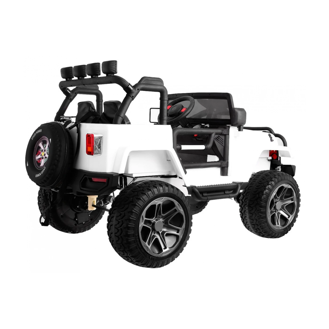Детский электромобиль RAMIZ Monster 4x4 - джип на аккумуляторе может долго и без проблем работать на сложных покрытиях. Специальная система на основе 4 двигателей мощностью 45 Вт каждый гарантирует комфорт и безопасность. Кроме того, набор из 2 аккумуляторов 12 В/7 А-ч и отсутствие холмов, высокой травы или неровностей не является проблемой для этого автомобиля.
