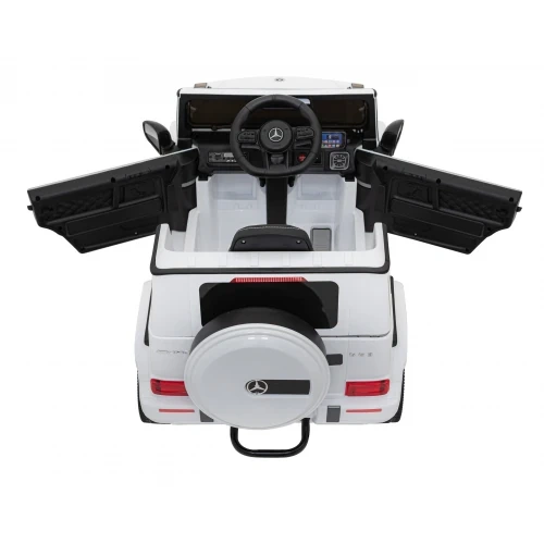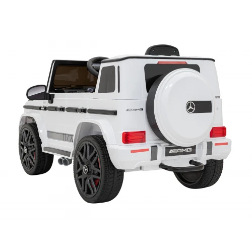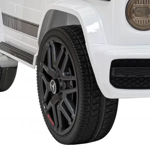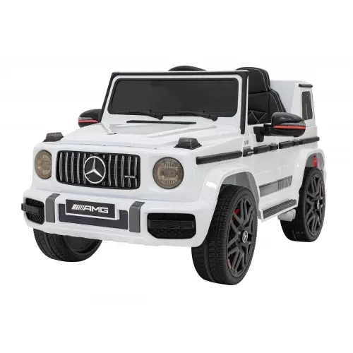 Детский электромобиль Ramiz AMG G63 – порадует всех любителей маленьких автомобилей. Он выглядит почти идентично своему взрослому аналогу. Он также имеет много функций, которые позволят малышам почувствовать себя настоящими водителями. Игрушечный автомобиль работает от 2 двигателей мощностью 25 Вт каждый. Кроме того, источником питания служит гелевой аккумулятор емкостью 12В/4,5Ач. Для того чтобы поддерживать долговечность автомобиля, важно регулярно заряжать его. Состояние заряда легко проверить на индикаторе в кабине. При поездке дети будут развлекаться в ритме музыки, которую можно воспроизводить с собственного устройства через входы MP3, SD, USB и AUX. Предварительно загруженные звуки также доступны на руле. Кроме того, светодиодные фонари на передней части автомобиля поражают своим дизайном. Внутри Mercedes AMG G63 есть механизмы, обеспечивающие безопасность детей. К ним относятся ремни сохранности и функция Slow Start с мягеньким стартом. Дополнительным для родителей станет пульт дистанционного управления из комплекта. С его помощью воспитатель может в любой момент остановить автомобиль и взять управление на себя. Комфорт также важен во время игры, поэтому игрушечный автомобиль оснащен сиденьем из эко-кожи и колесами из пенополиуретана EVA, дополнительно амортизированными на задней оси. Такое сочетание гарантирует плавность хода.