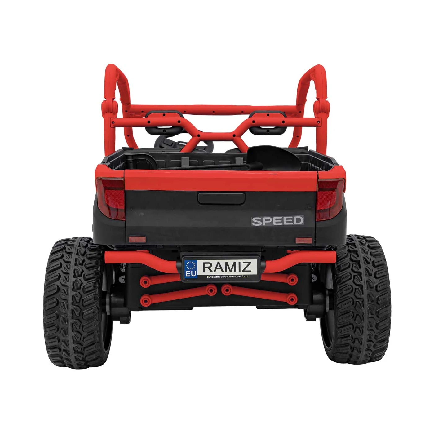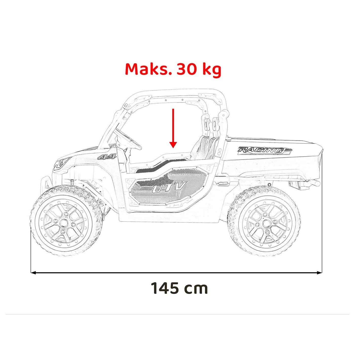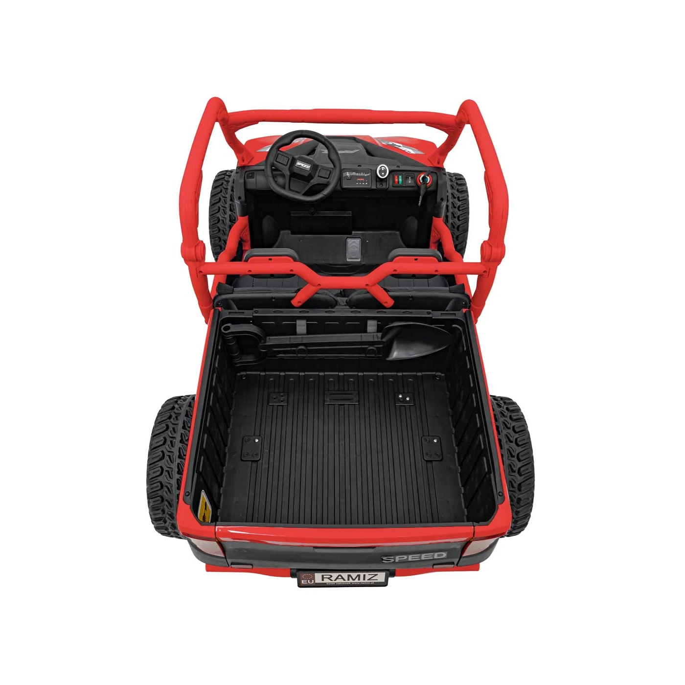 Детский электромобиль Ramiz Farmer Truck UTV Racing – маленькие автолюбители почувствуют себя настоящими фермерами за рулем аккумуляторного грузовика Farmer Truck UTV Racing. Благодаря движущемуся кикеру с электрорегулировкой малыш сможет самостоятельно переносить и сбрасывать груз, что сделает развлечение еще более реалистичным и увлекательным. Прочная конструкция автомобиля и современный дизайн гарантируют многие часы активных развлечений на природе. Значок двигателя. Электромобиль с полным приводом. Farmer Truck UTV Racing оснащен 4 мощными двигателями по 75 Вт каждый, которые обеспечивают динамическое вождение, а привод 4x4 позволяет с легкостью преодолевать разные поверхности. Он питается от батареи 24 В/7 Ач, которая обеспечивает энергию для длительных поездок. Кроме того, автомобиль имеет индикатор заряда, расположенный в кабине, поэтому вы всегда будете знать когда зарядить автомобиль. Значок звука и света.Интерактивные аттракционы и подвижный кикер.Автомобиль Farmer Truck UTV Racing – это не только мощное и эффективное, но и интерактивное развлечение. Модель обладает светодиодными передними фарами, которые не только подчеркивают ее современный внешний вид, но и обеспечивают лучшую видимость даже в темноте. Аудиопанель с входами MP3 и USB и возможностью подключения через Bluetooth позволяет легко воспроизводить любимую музыку, что сделает каждое путешествие более приятным. Также есть звуки в руле, придающие реалистичности и радости во время вождения. Гарантия безопасности значок. Безопасное вождение со многими функциями Для высочайшего уровня безопасности Farmer Truck UTV Racing оснащен рядом функций для защиты маленьких водителей. Функция Slow Start обеспечивает плавный старт, предотвращающий резкие рывки, а ремни безопасности гарантируют, что ребенок остается на месте во время движения. Колеса из пенопласта EVA с амортизаторами на каждом колесе идеально поглощают удары, обеспечивая комфортную и стабильную езду. Кроме того, родители могут иметь полный контроль над транспортным средством благодаря пульту ДУ, который позволяет выбрать скорость и немедленно остановить автомобиль, если это необходимо.