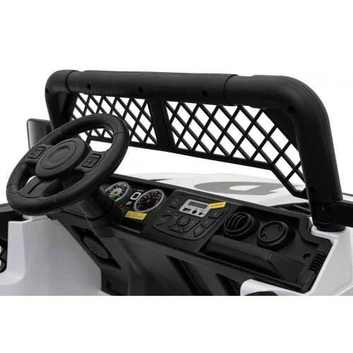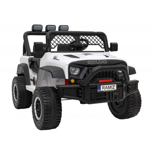 Детский электромобиль Ramiz Geoland Power – идеальный выбор для детей, которые любят увлекательные поездки и не боятся никаких гор. С мощной машиной с большими колесами и высокой подвеской вы покорите любую дорогу. Работая от аккумулятора 24В/7Аг и имея 2 двигателя мощностью 200 Вт каждый, Geoland Power достаточно мощный, чтобы свободно ездить по любой местности. Geoland Power может легко справиться с выбоинами и даже значительными холмами. Чтобы надежность электропривода прослужила как можно дольше, производитель рекомендует не допускать разрядки аккумулятора и сохранять его при комнатной температуре в межсезонье. Автомобиль оснащен аудиопанелью и светодиодными часами. Вы можете слушать любимые песни, подключив устройство к входам MP3, USB и AUX. Кроме того, музыка всегда будет доступна на FM-радио и под кнопками с предварительно загруженными мелодиями. Благодаря звуковому сигналу на руле и светодиодным фарам спереди и сзади ваш малыш почувствует себя как в настоящем автомобиле. Даже во время самых экстремальных приключений дети будут в полной безопасности машине Geoland Power. Это обеспечивается ремнями безопасности и функцией Slow Start, которая мягко запускает двигатель. Каждая поездка будет очень веселой для маленького водителя. Ему понравится сидеть на удобном сиденье, обтянутом эко-кожей, и наслаждаться плавной ездой на колесах из пенополиуретана EVA. Учитывая внедорожный характер автомобиля, он также имеет амортизаторы на каждом колесе. Внедорожная езда на сложных тропах может наслаждаться до 2 детей одновременно. Благодаря большому сиденью размером примерно 52 x 19 x 28 см, маленький водитель может легко взять с собой на прогулку своих братьев и сестер или друзей. Малыши также могут взять с собой в дорогу любимые игрушки или лакомство. Все они поместятся в вместительном багажном отделении за сиденьями.