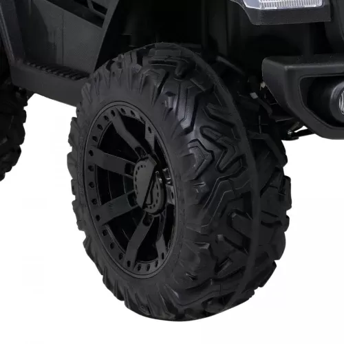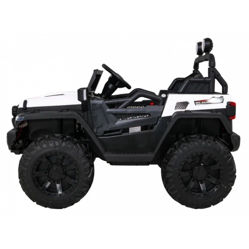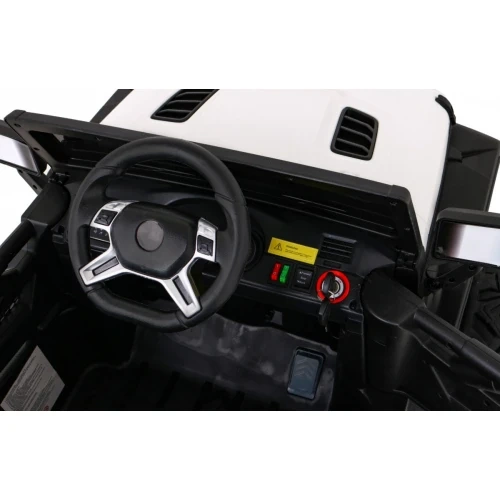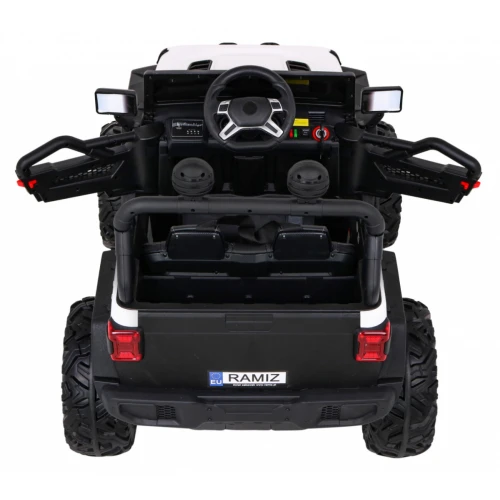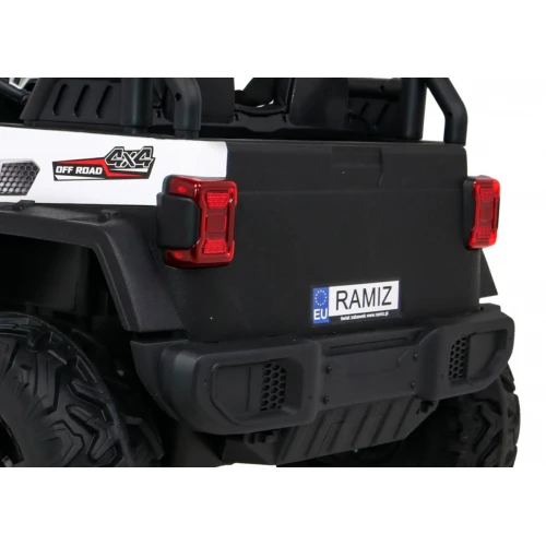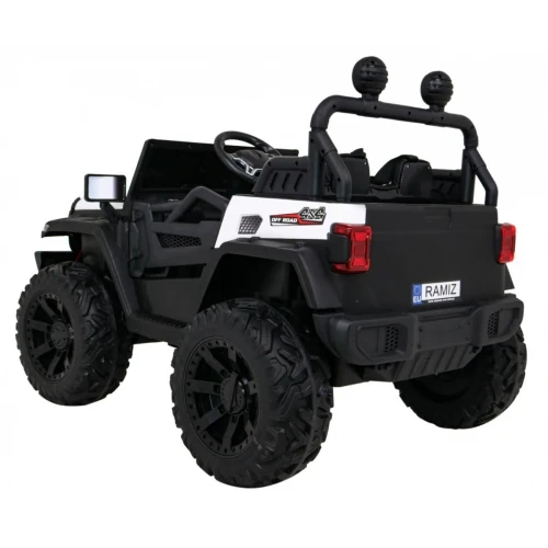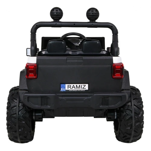 Детский электромобиль Ramiz Master Of Terain – это практичный, компактный и безопасный детский автомобиль на батарейках. Он идеально подойдет для начала приключений на собственном внедорожнике. Машина отлично подходит для езды по неровной местности, поскольку имеет большие колеса на подшипниках, изготовленные из мягкой пены EVA. Каждое колесо оснащено амортизатором, оказывающим значительное влияние на качество и комфорт езды. Транспортное средство изготовлено из прочного, первоклассного пластика и оснащено светодиодными фонарями спереди и сзади, а также коробкой передач с подсветкой. Транспортное средство работает от двух мощных 35-ваттных двигателей и имеет аккумулятор 12В/10Ач. Модель подходит для детей от трех лет и отвечает всем требованиям безопасности. Автомобиль оборудован ремнями безопасности, имеет замок на боковой двери и пульт дистанционного управления, благодаря чему родители будут иметь полный контроль над транспортным средством. С помощью пульта ДУ можно управлять автомобилем вперед, назад, поворачивать, корректировать управление ребенком и немедленно останавливаться, если это необходимо. Преимуществом автомобиля является медленный старт, автомобиль стартует очень медленно, чтобы ваш ребенок не испугался при старте. Игрушечный автомобиль прослужит вашему ребенку до достижения им веса 28 кг или пока он не станет достаточно взрослым, чтобы пересесть на большую модель.