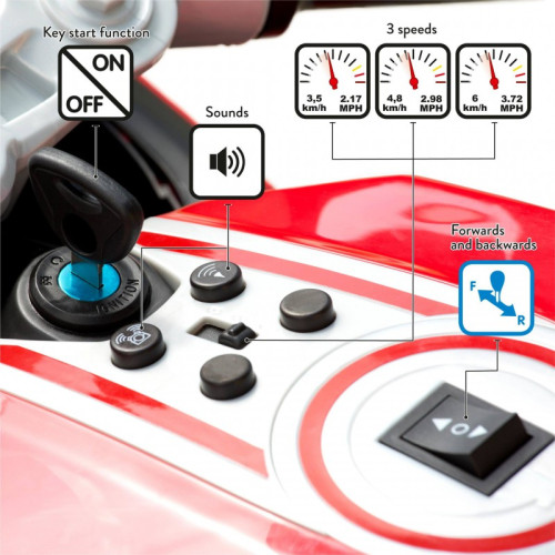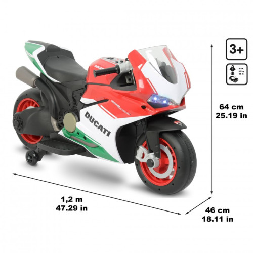 Электробайк Feber Ducati 12V FEN09000 - мотоциклом, который отправит вашего ребенка в удивительное путешествие, полное эмоций и веселья! Благодаря аккумулятору 12 В и скорости от 3,5 до 6 км/ч, этот мотоцикл предлагает как мягкое ускорение, так и динамическую езду вперед и назад. Оснащенный ключом, тремя передачами и прогрессивным ускорением, он гарантирует безопасное удовлетворение. Дополнительное освещение спереди и на приборной панели, а также звуковой сигнал повышают реалистичность игры. Пусть ваш ребенок почувствует ветер в волосах с Feber MOTO DUCATI 12V - мотоциклом, который пробудит в нем воображение и страсть к езде!