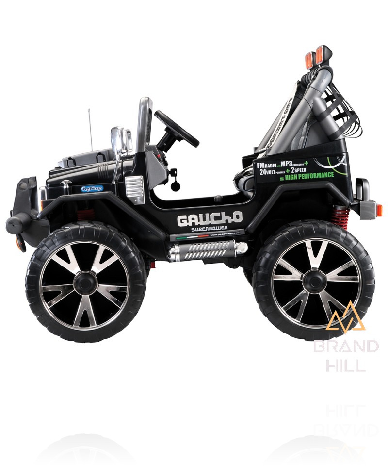 Электромобиль Peg Perego Gaucho Superpower - ребенок оценит всю мощь Gaucho SuperPower Peg Perego. Индикатор зарядки батареи поможет определить возможное время катания. Резиновые накладки на колесах, делают практически бесшумным ход этого электромобиля в отличии от его сородичей. Мы уверены, что покупая Gaucho Super Power вы покупаете своему ребенку надежный, прочный, безопасный, красивый и очень мощный электромобиль.