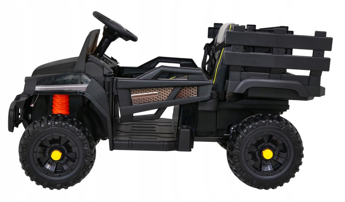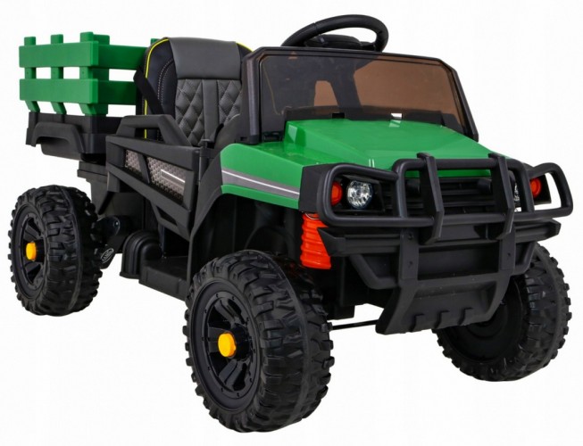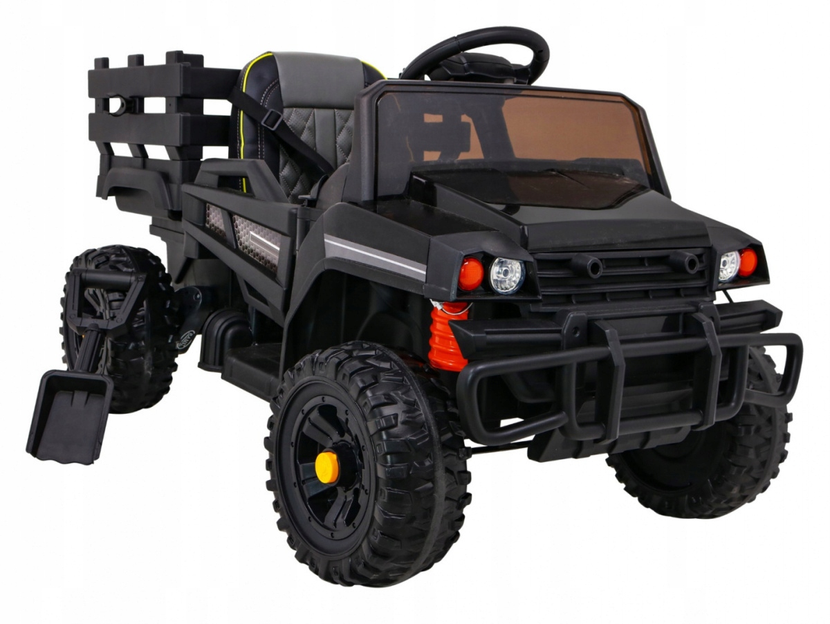 Электромобиль RAMIZ Farmer Pick-Up – имеет 2 двигателя мощностью по 35 Вт каждый. Накопитель дополнен емким аккумулятором 12V/7Ah. Мягкая и длинная езда гарантирована. Кроме того, вы можете в любое время проверить состояние заряда аккумулятора благодаря индикатору на кабине. Во время вождения дети могут слушать FM-радио или собственные песни благодаря входам SD, MP3 и AUX. Чтобы получить еще большее удовольствие, они также могут включить реалистичные звуки на руле и светодиодные фонари в передней части автомобиля. У фермерской машины большой вместительный багажник за сиденьем. Маленький водитель возьмет с собой любимые игрушки и снеки. В дополнительную оснастку транспортного средства также входит лопата, с помощью которой ребенок может насыпать, например, песок на ящик для транспортировки. Оборудование представленного автомобиля для детей обеспечивает полную безопасность и комфорт вождения. Это гарантируют ремни безопасности, пенопластовые колеса EVA с амортизатором на задней оси и функция Free Start, которая устраняет рывки при старте и торможении. Кроме того, сиделки располагают пультом дистанционного управления, с помощью которого они могут в любой момент взять управление транспортным средством. Они скорректируют маршрут ребенка и остановят автомобиль в аварийном случае. Вы также можете регулировать скорость движения – есть 3 скорости на пульте и 2 скорости на кабине.