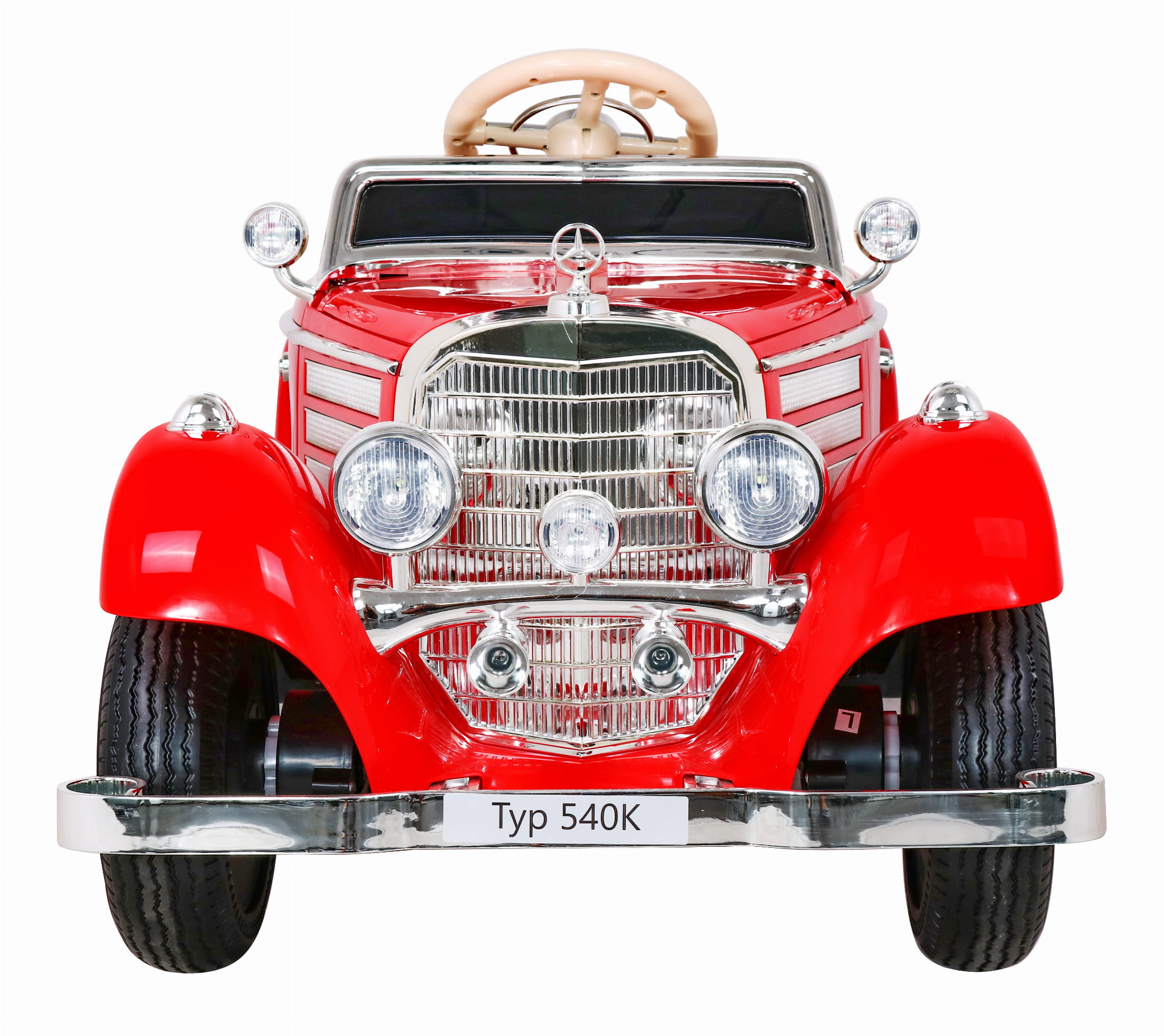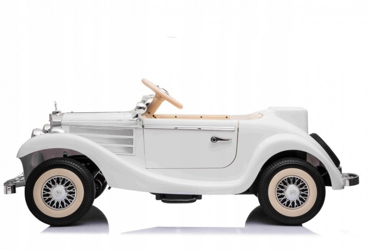 Электромобиль RAMIZ Mercedes Benz Retro Typ 540A - o оснащен уникальными светодиодными фонарями спереди и сзади. У него мягкие колеса EVA, амортизаторы в задней части автомобиля и черное вентилируемое сиденье из экокожи для комфорта вашего ребенка. Он приводится в движение мощностью четырех двигателей мощностью 35 Вт и имеет батареи типа 12 В / 10 Ач.