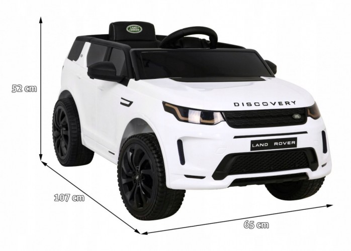 Электромобиль Ramiz Land Rover Discovery Sport - представленный автомобиль для детей работает от 2 двигателей мощностью 25 Вт каждый и аккумулятора емкостью 12 В/7 Ач. Компоненты обеспечат самым маленьким детям плавную и надежную езду по ровным поверхностям. Дополнительно в кабине есть индикатор заряда, информирующий о необходимости подключить батарею к зарядному устройству. Все водители любят слушать и петь любимые песни за рулем. Вот почему автомобили на аккумуляторах оснащены аудиопанелью, чтобы каждая поездка была веселой. Вы можете подключить собственное музыкальное устройство через USB, AUX, MP3 и Bluetooth. Кроме того, доступны предварительно загруженные мелодии и звуки руля. Малыши также будут в восторге от светодиодных фонарей спереди. Автомобиль на аккумуляторе оснащен крепкими ремнями безопасности и колесами из пены EVA, что обеспечивает комфорт вождения ребенка. Дополнительно есть функция Slow Start, которая обеспечивает плавный старт и остановку автомобиля. Безопасность при движении также обеспечит пульт дистанционного управления для воспитателей. Родители могут мгновенно остановить транспортное средство, нажав кнопку STOP, и взять управление, скорректировав маршрут малыша. Кроме управления по всем направлениям, на пульте дистанционного управления можно выбрать 1 из 3 скоростей движения. Land Rover Discovery имеет дополнительную привлекательность – функцию люльки. Просто активируйте его кнопкой на кабине, и автомобиль начнет спокойно наклоняться, как люлька. Автомобиль также включает в себя средства для транспортировки автомобиля. Спереди расположена удобная ручка для транспортировки, а сзади – маленькие колеса.