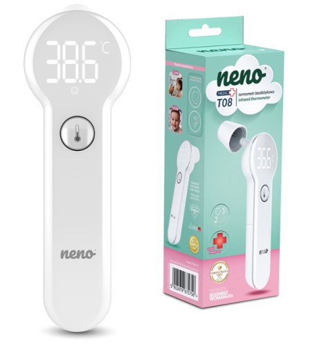 Бесконтактный термометр NENO MEDIC 5756 - надежный медицинский прибор, который поможет вам заботиться о своем здоровье каждый день. Благодаря мгновению за 1 секунду и простому управлению вы избежите стресса. Вместо того чтобы тратить время на ожидание, вы можете быстро и удобно измерить температуру как днем, так и ночью. Кроме того, о повышении температуры тела термометр уведомит об этом короткий звуковой сигнал. Термометр обеспечивает быстрый и точный результат с минимальной погрешностью, что делает его идеальным как для домашнего использования, так и профессиональных учреждений. Точность 0,2 °C дает вам уверенность, что всегда будете знать, какая температура у вашего ребенка. Medic T08 использует инфракрасную технологию, поэтому вы можете производить измерение бесконтактным способом. Термометр самостоятельно изменяет режимы работы. Просто снимите магнитную крышку, чтобы измерить температуру в ухе. Переключение происходит молниеносно, а устройство всегда предоставляет максимально точные данные. Это означает, что вы можете настроить его работу в соответствии со своими текущими потребностями без стресса или ненужных действий. Большой светодиодный дисплей делает изменение единицы измерения температуры и чтения результатов простым и интуитивно понятным. Цифры четкие, а сам экран подсвечивается, потому вся процедура возможна и ночью. Измерение температуры на лбу особенно полезно для новорожденных и новорожденных. Neno Medic T08 производит измерения за 1 секунду, что означает отсутствие стресса или тревоги как для вас, так и для самых молодых. Термометр также позволяет измерять температуру в ухе. Это удобное решение, позволяющее получать быстрые и надежные показания. Изделие сделано из высококачественных материалов. Он легкий, красивой формы и очень крепкий. Благодаря компактным размерам он поместится в аптечку, сумку или ящик.