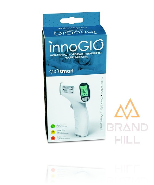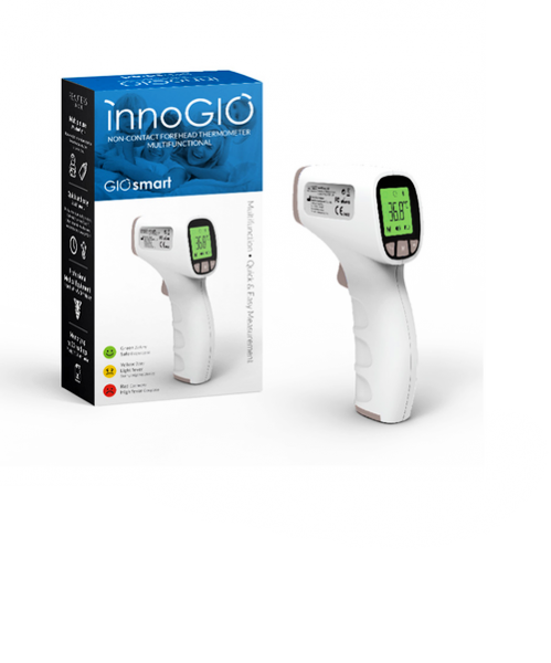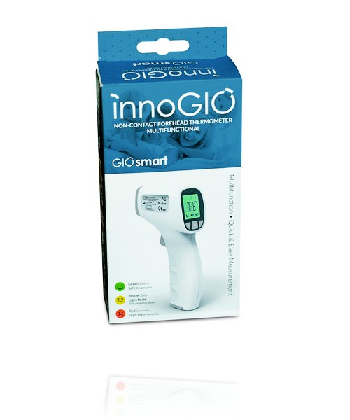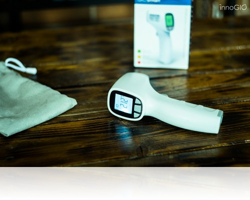Инфракрасный термометр InnoGIO GIOSmart - бесконтактный термометр для всей семьи. Бесконтактный инфракрасный термометр InnoGIO GIOsmart поможет вам позаботиться о здоровье всей семьи. Благодаря исключительной функциональности и чувствительному датчику, вы можете точно и быстро измерить температуру. С помощью нашего термометра вы можете измерять как температуру тела - измерение ото лба, так и температуру поверхности, в том числе жидкой пищи для ребенка. Кнопки для переключения между температурами C ° и F °, отключения звука или изменения режима измерения делают его универсальным и простым в использовании. Большой разборчивый дисплей с функцией ночного освещения облегчает интерпретацию результатов измерений. GIOsmart имеет карту памяти до 20 последних измерений, так что вы можете легко следить за состоянием здоровья пациента.
