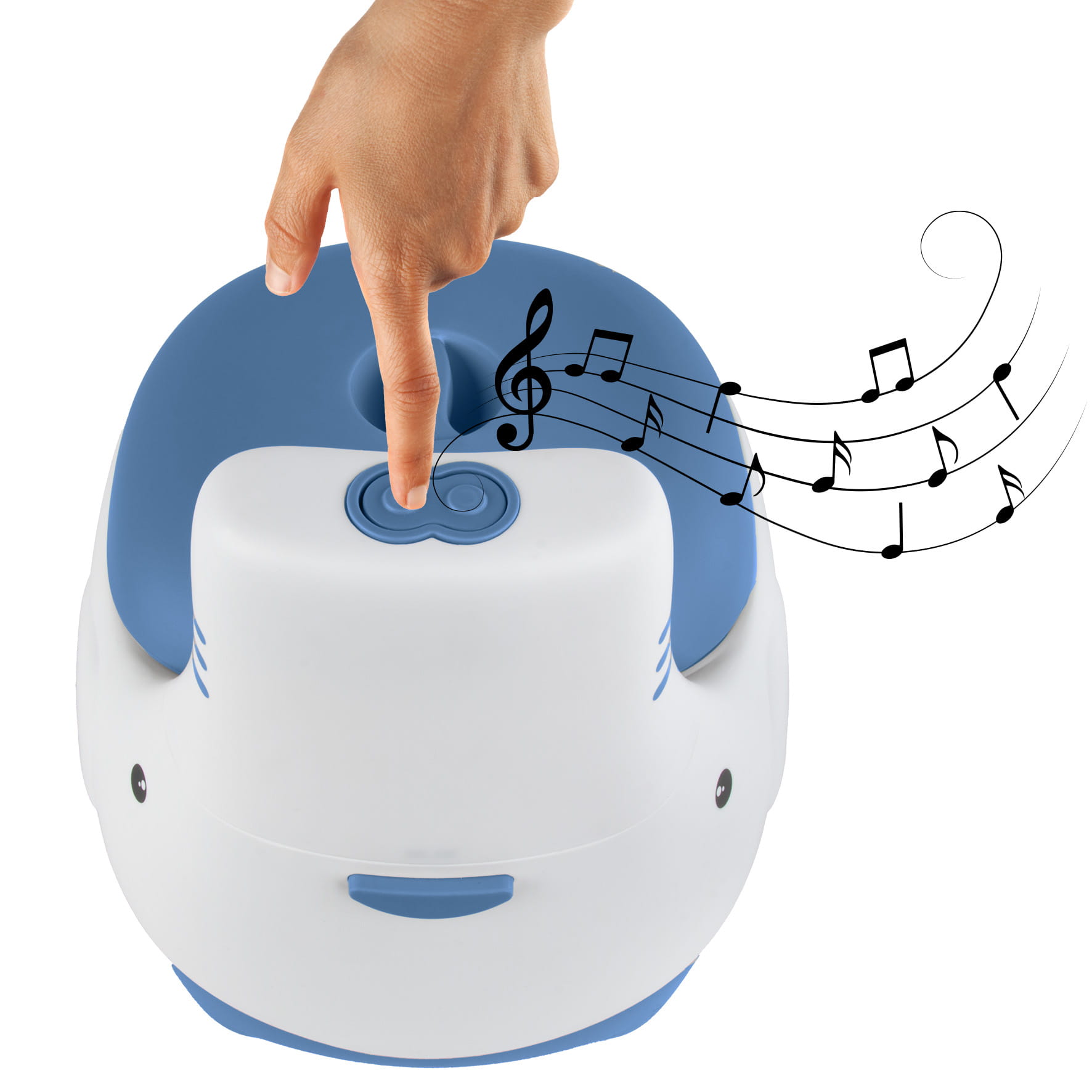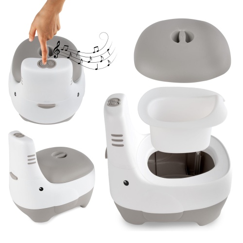 - Кнопка, встроенная в спинку, активирует звук смыва, поощряя вашего ребенка пользоваться горшком с интересом и привлечением. Это также готовит вашего ребенка к пользованию настоящим туалетом.