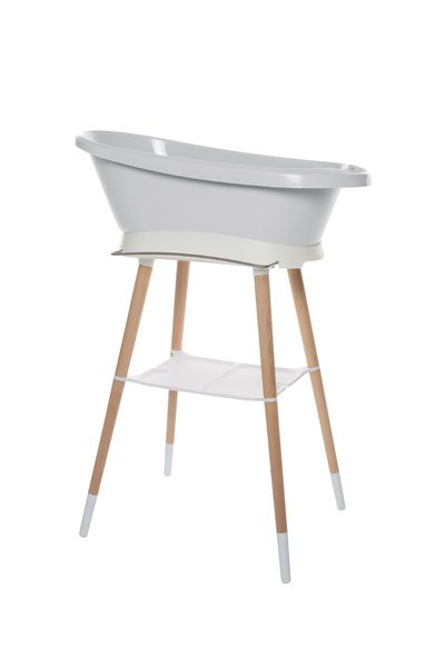 - Буковая подставка White.Очень стойкая подставка Sense имеет ножки из бука, сертифицированного FSC. Это придает подставке элегантный, современный вид. Оснащена практическими вспомогательными средствами: спереди крепится держатель для полотенец. Просторная пластиковая полка обеспечивает достаточно места для, например, шампуня, мочалки, водных игрушек или геля для ванной. Это значит, что у вас под рукой все необходимое, чтобы вы и ваш ребенок могли спокойно наслаждаться купанием. Инновационная крепежная система гарантирует, что ванну можно легко прикрепить к подставке и так же легко снять. После нажатия можно спокойно и безопасно купать ребенка. Ее безопасность проверена самым большим авторитетом в области испытаний, немецкой испытательной лабораторией TUV. Подставка предназначена для купания детей весом до 18 кг.