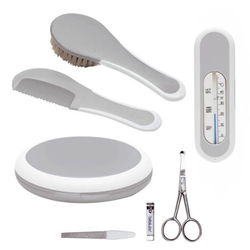Набор по уходу за младенцами Bebe-Jou - практичный и красивый набор по уходу от Bébé-jou идеально подходит в качестве подарка будущим родителям.В набор входят аксессуары по уходу за ногтями, щетка с расческой и термометр для ванны.Три основных продукта, необходимые для правильного ухода за гигиеной вашего ребенка. Упакован в эстетическую и удобную коробку. Идеальный подарок на праздник ребенка. Цвет белый.
