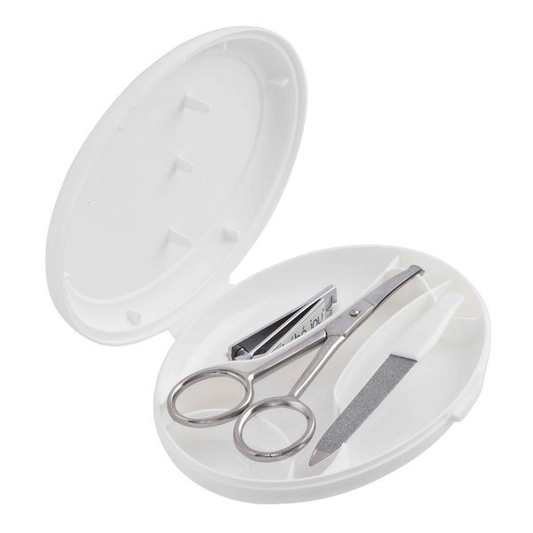 - Набор аксессуаров для ухода за ногтями. Он содержит очень удобные и точные ножницы из нержавеющей стали, кусачку для ногтей и маленькую пилочку. Ножницы имеют закругленные кончики, что делает их очень безопасными.
