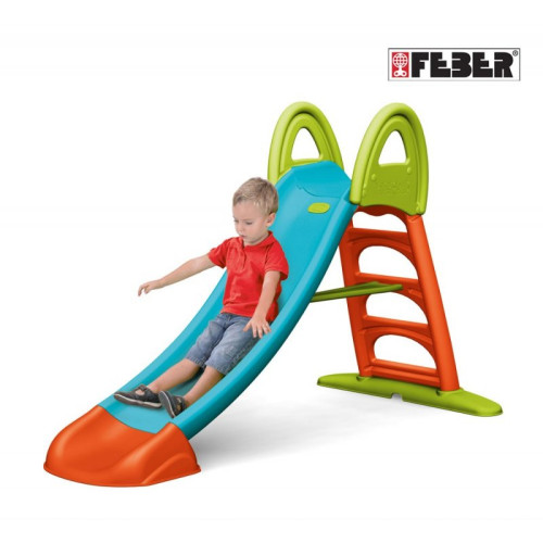 Большая детская горка с водным спуском 190 см Feber 09592 - красочная горка испанского бренда Feber для детей от 3 лет.Длина горки 190 см, безопасность обеспечивает удобная лестница с ручками для заезда ребенка. К горке можно подключить садовый шланг, и мы получим водную площадку, идеальную в жаркие дни. Изделие изготовлено из прочного и устойчивого пластика с покрытием ANTI-UV, которое защищает от выцветания.