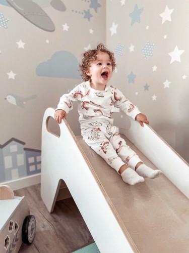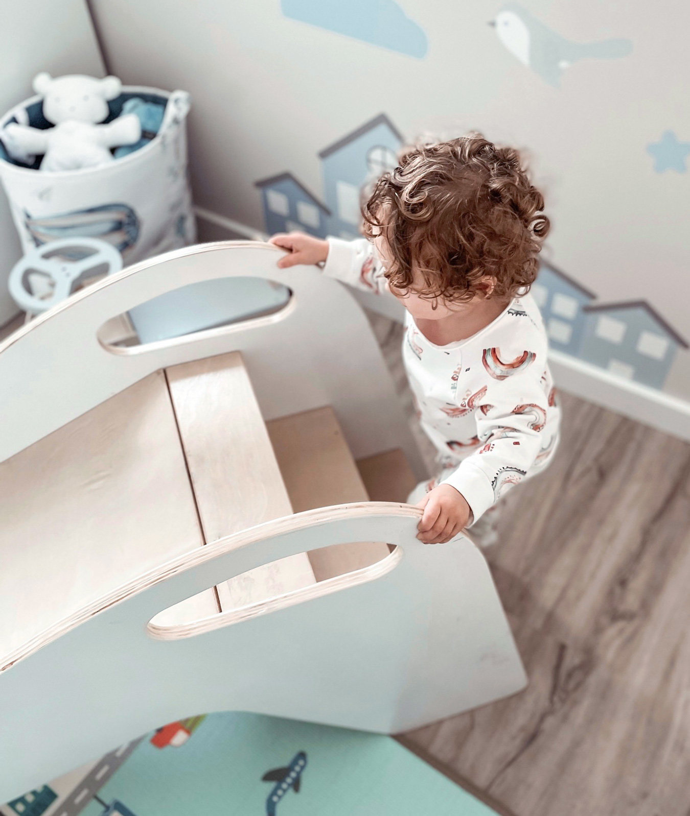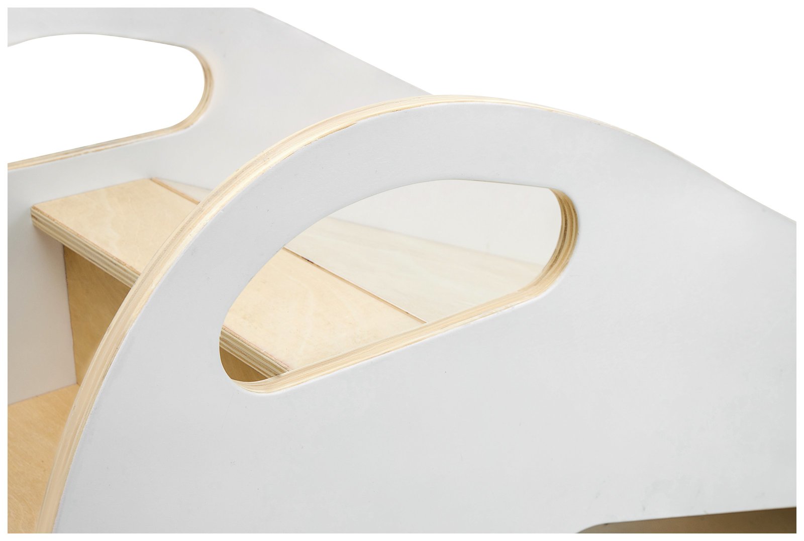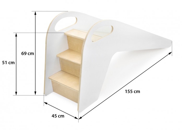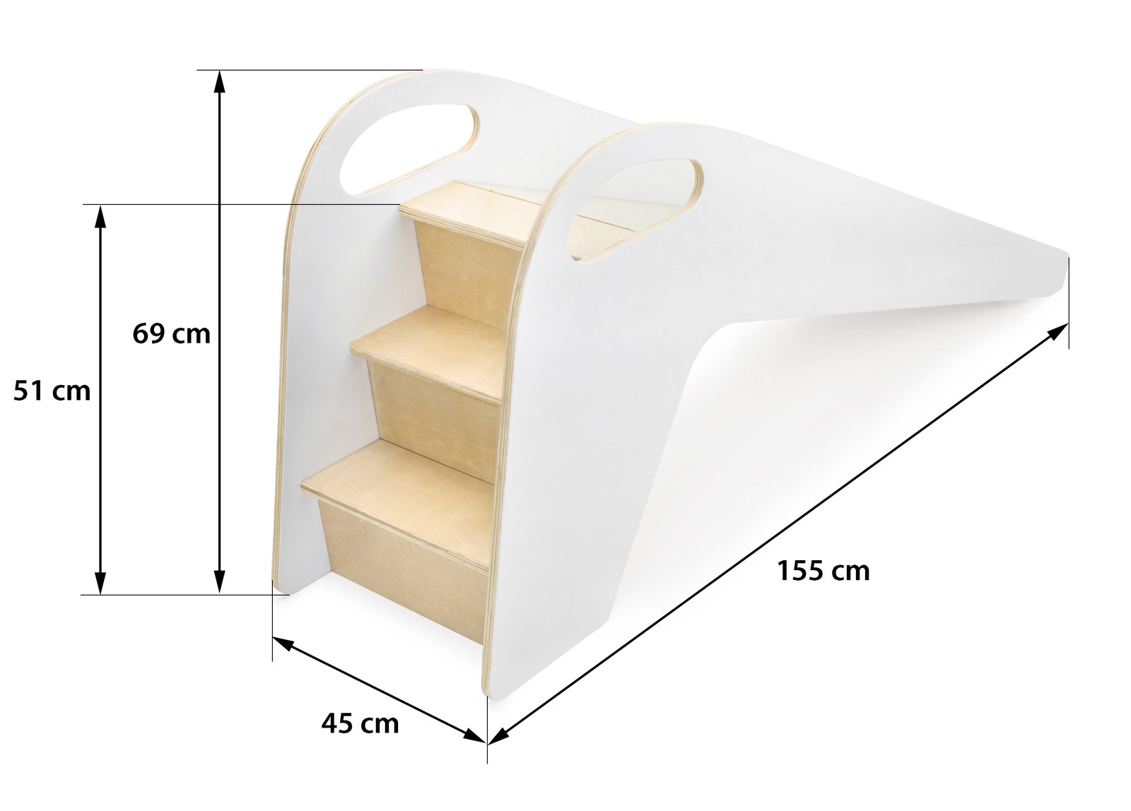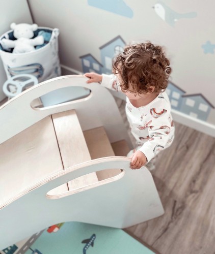 Детская горка Mamabrum MONTESSORI от 12мес - кому не нравится веселое скольжение? А если бы такое оборудование было у вас дома? мечта! Недаром эта горькая – настоящий хит на каждом детском собрании. Это универсальная игрушка, которая порадует абсолютно каждого ребенка. Чтобы подняться на вершину горки, малыш должен подняться на три широкие и достаточно глубокие ступени, в этом дополнительно помогут ручки с обеих сторон. В верхушке есть небольшое уплощение, где можно удобно сесть, а затем сползти вниз. Конструкция была разработана для обеспечения стабильного и безопасного использования. Горка изготовлена из 100% деревянной фанеры, имеет закругленные углы и правильно закрепленные элементы, гарантирующие хорошее развлечение в течение длительного времени. Он имеет красивый классический дизайн, сочетающий белый цвет с цветом светлого дерева. Прекрасно впишется в любой интерьер. Знаете ли вы, что скольжение развивает пространственное восприятие и чувство равновесия? Это одно из самых любимых детских занятий, развивающее моторику. В сочетании с ямой для мяча это создает приватную домашнюю игровую комнату.