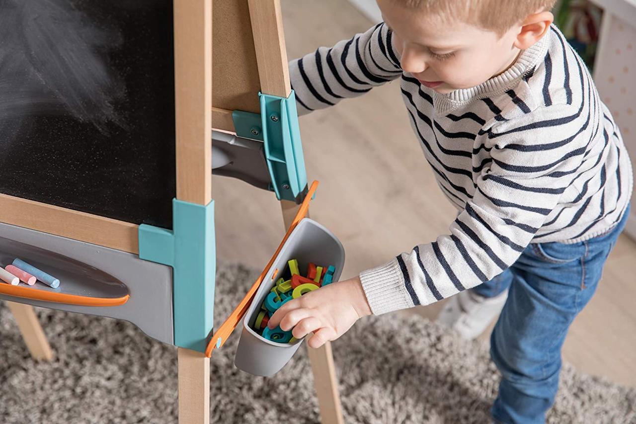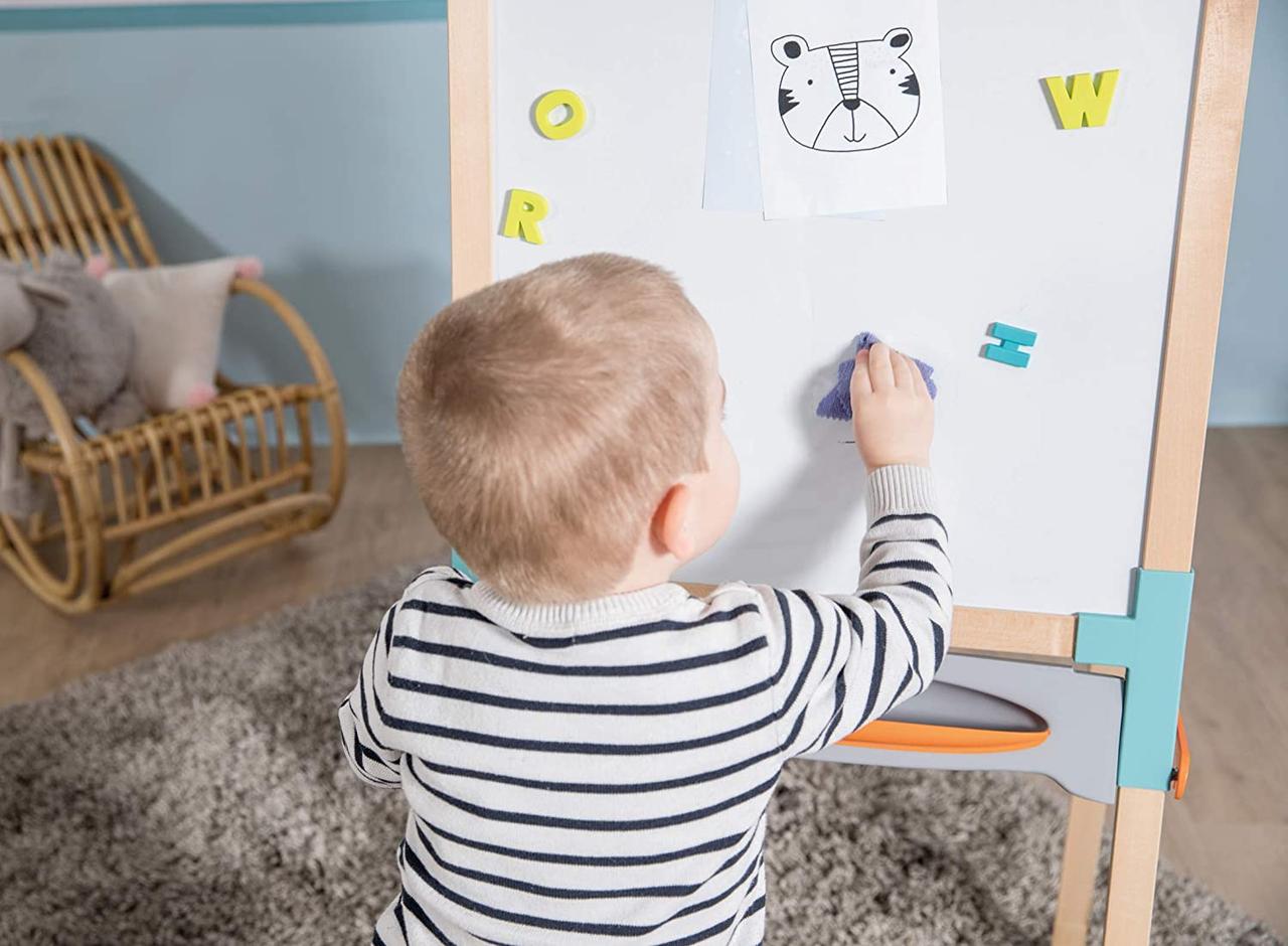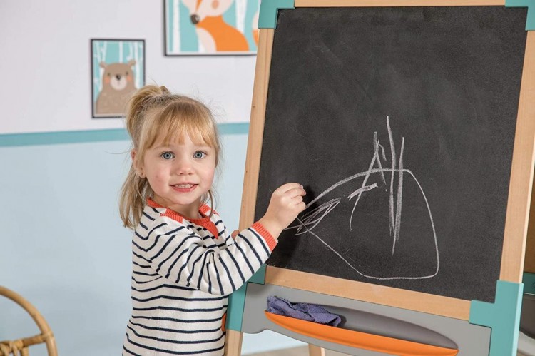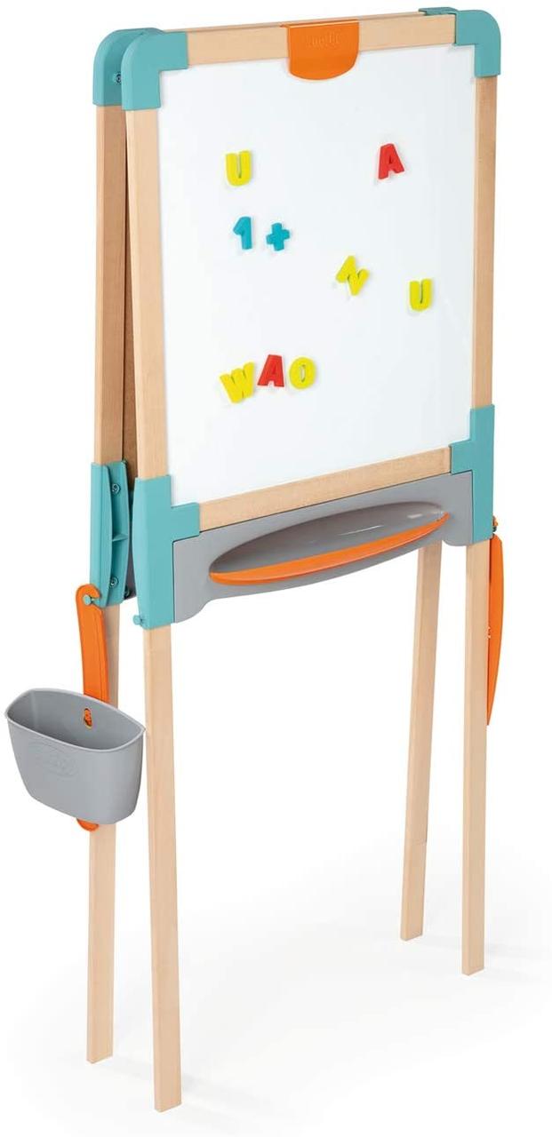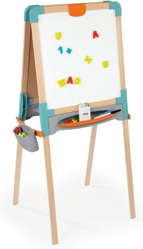 Двухсторонний деревянный мольберт Smoby - Каждый ребенок любит рисовать и много из них во время игры может разрисовать все вещи в доме, для того чтобы это не происходило и ребенок мог развивать свой талант.Двойная двусторонняя деревянная эволюционная доска: одна магнитная сторона и одна сторона для мела, элегантное сочетание дерева и пластика, которые делают его очень прочным. Ножки мольберта можно отрегулировать по высоте. Достаточно легко складывается я, так что места занимать много не будет.На мольберте есть специальная клипса, для того чтоб ребенок мог зафиксировать лист для рисования.
